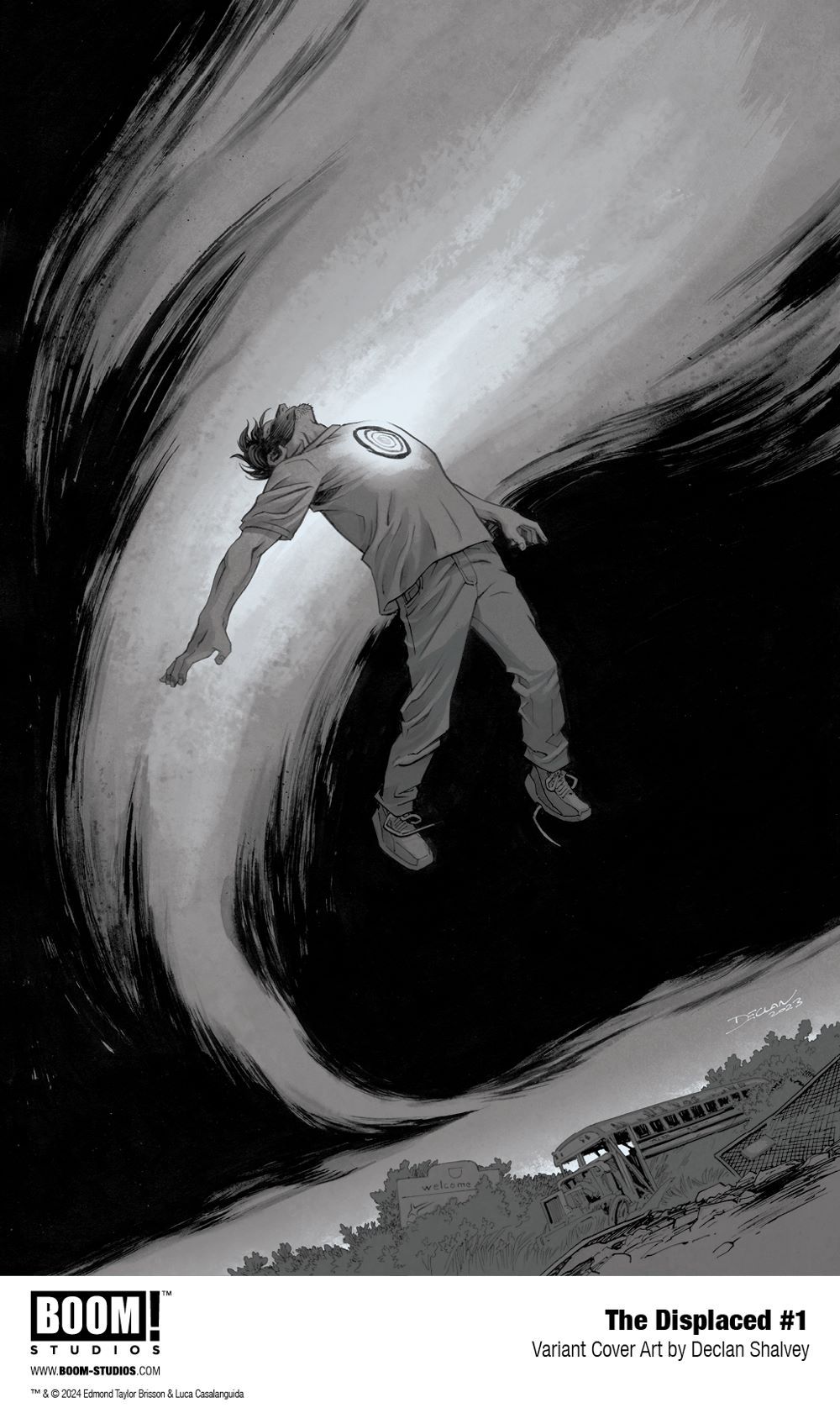 Media Release -- BOOM! Studios today revealed a first look at THE DISPLACED #1, the premiere issue of the brand new original series by critically acclaimed writer Ed Brisson (Batman: The Brave and the Bold), rising star artist Luca Casalanguida (Regarding the Matter of Oswald’s Body), colorist Dee Cunniffe (Crossover), and letterer Hassan Otsmane-Elhaou (The Blue Flame). Discover a new psychological and philosophical mystery in THE DISPLACED, coming February 2024.