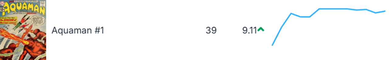 A $500 increase in value in the 8.0 grade and a $200+ increase in value in the 7.0 grade saw the King of the Seven Seas riding high over the past 90 days. It’s also the second three-month period in a row that Aquaman’s first solo issue has been a winner. Since the poor reception of Aquaman and the Lost Kingdom in 2023, this comic has been in freefall. Even though he’s a B character, his first issue still has value from a collecting and historical perspective. Perhaps this one has finally reached bottom and is starting a turnaround.