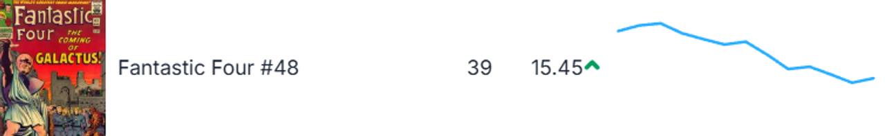 It’s been a brutal six months for the original Galactus trilogy. Since the release of Fantastic Four: First Steps (and even for a couple months before that), it’s been nothing but a negative trajectory for this book and Fantastic Four #49, which is down 8% over the past three months. The first issue in the Galactus trilogy is down in nearly every grade in our index and continues to tumble.