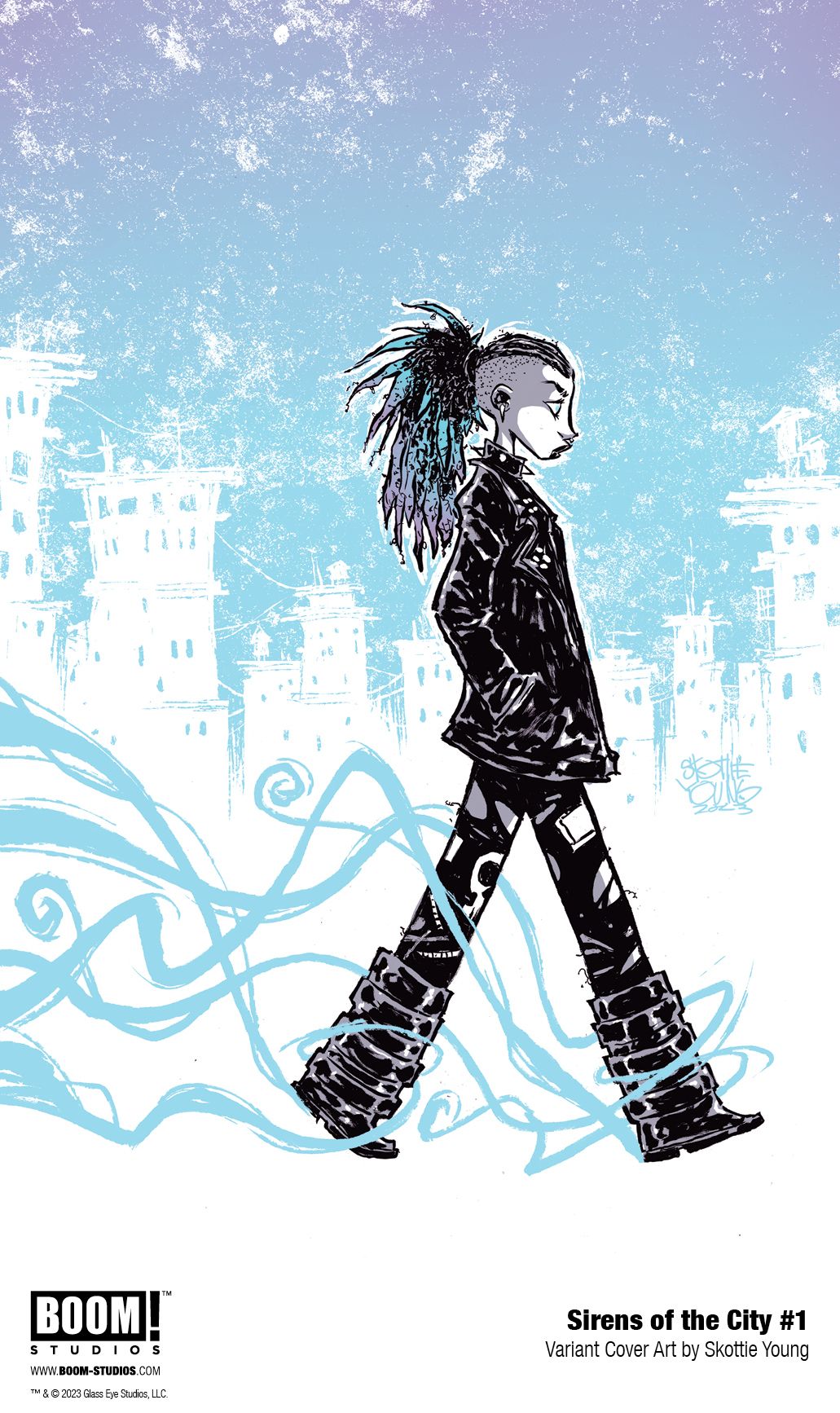 Media Release -- BOOM! Studios today revealed the variant cover art of SIRENS OF THE CITY #1 by Skottie Young (I Hate Fairyland), the premier issue of the new gritty urban fantasy from the superstar creative team of writer Joanne Starer (Painkiller Jane), artist Khary Randolph (Excellence), and letterer AndWorld Design, coming to comic shops July 2023.