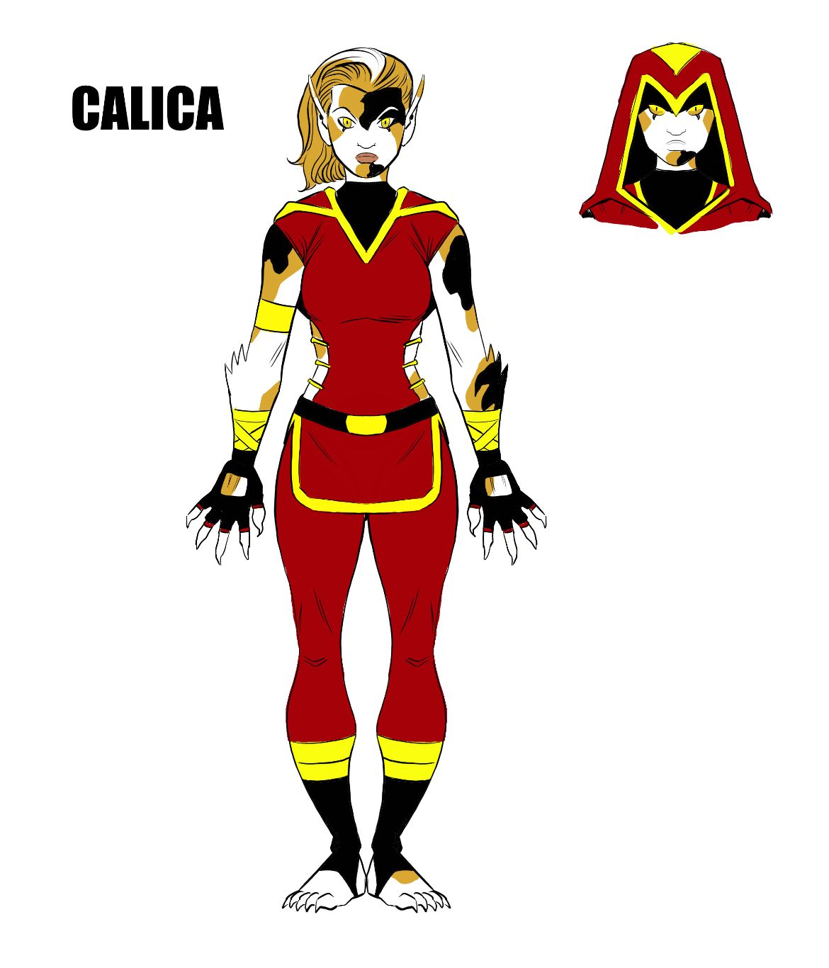 As her name may imply, this new young Thunderian is inspired by the appearance of Calico cats, with a tri-color fur pattern and a distinctive black patch around one of her eyes. She's found among the wreckage of a Mu'Tant ship. More of her backstory will be revealed in the issue and beyond for readers.