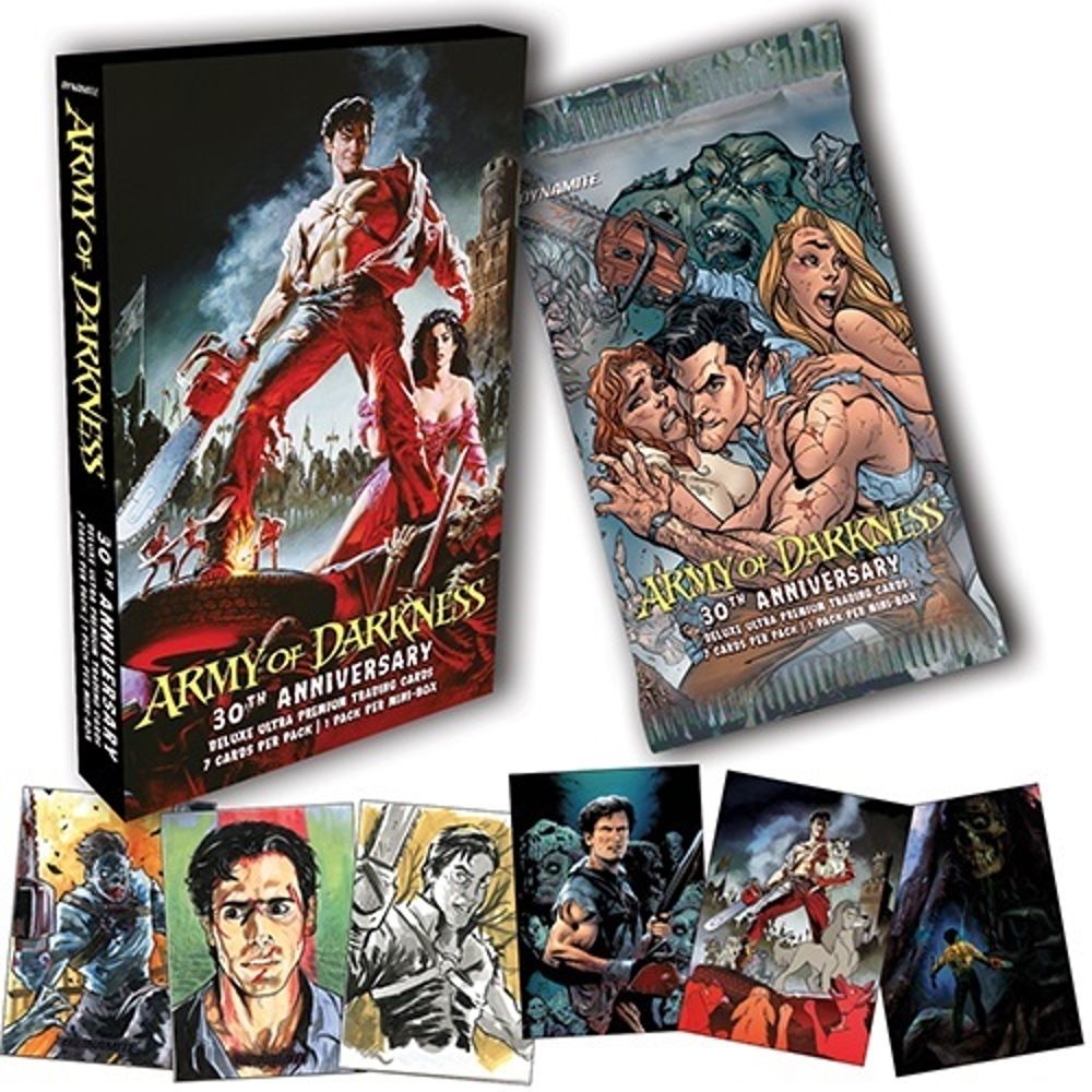 Dynamite is going to do it up big as we've just passed the 30th anniversary of the movie, but Army of Darkness #1 was the first comic ever published by the company back in 2004. To go along with the new series, we are releasing an Army of Darkness Movie Adaptation 30th Anniversary Edition and Army of Darkness 30th Anniversary Trading Cards.