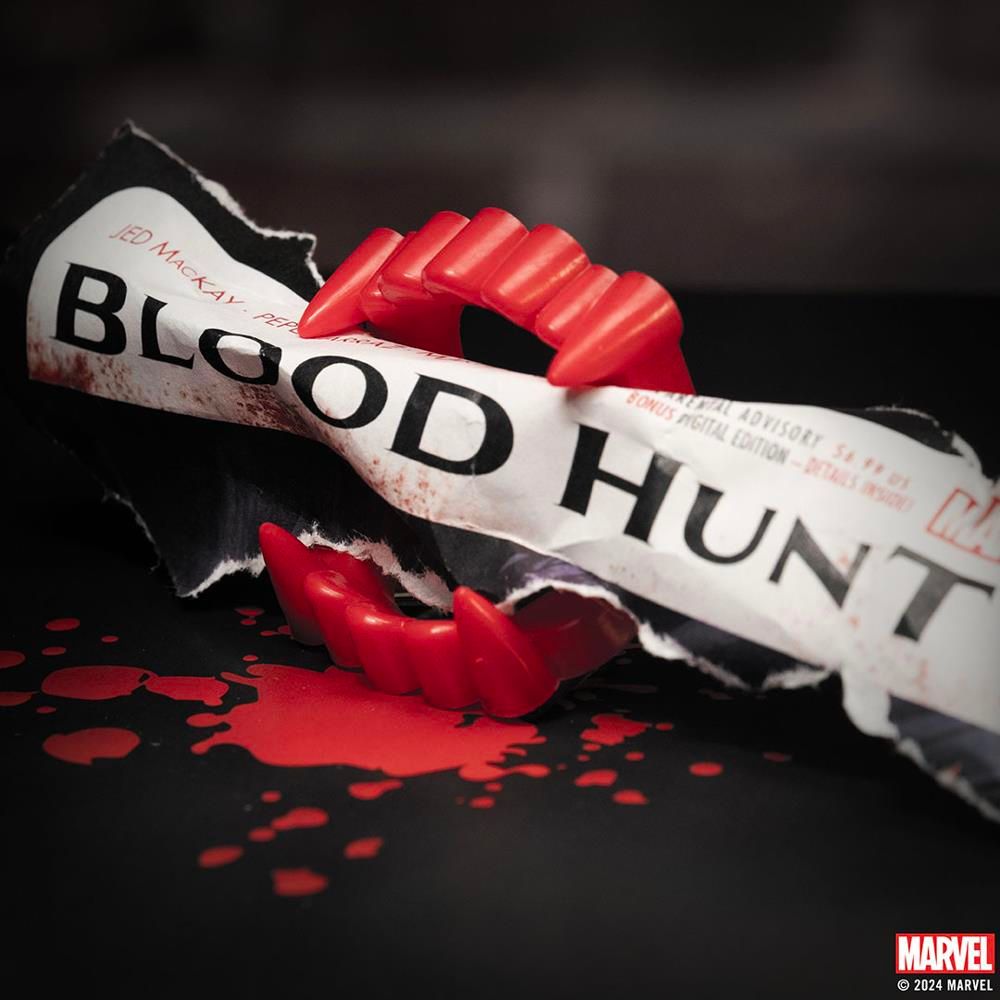 When the vampire's reign begins, fans can look the part by visiting participating comic shops and picking up special vampire teeth! These teeth will be available in-stores on the same date of BLOOD HUNT #1, May 1, while supplies last. And that's not all: Each pair of teeth will come packaged with an EXCLUSIVE Blood Hunt trading card!
