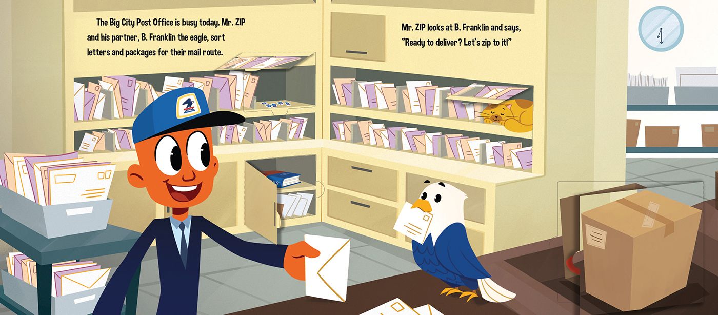 The Iconic USPS® mascot teaches about mail & values & more in MR. ZIP'S WINDY DAY.