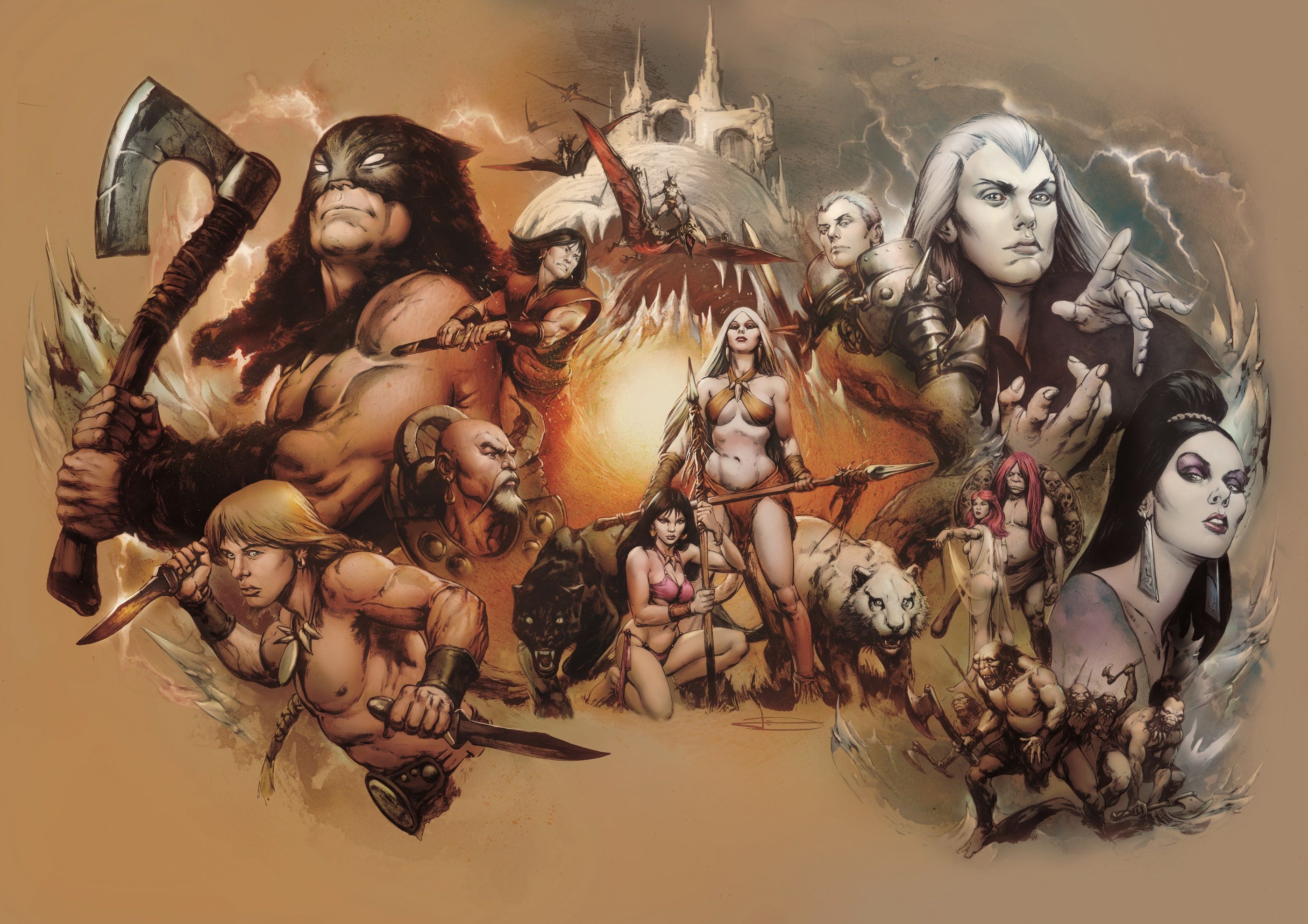 As with any project involving Frank Frazetta in its DNA, a new crop of top of the line cover artists was also absolutely necessary to channel his fantasy mastery. The first issue features stunning covers by Bill Sienkiewicz (New Mutants, Elektra), Joseph Michael Linsner (Dawn, Wolverine), Mahmud Asrar (Conan the Barbarian, Batman vs. Robin), Francesco Francavilla (Zorro, Captain America), interior artist Leonardo Manco, and a special presentation of Frazetta's original painting for the film's poster.