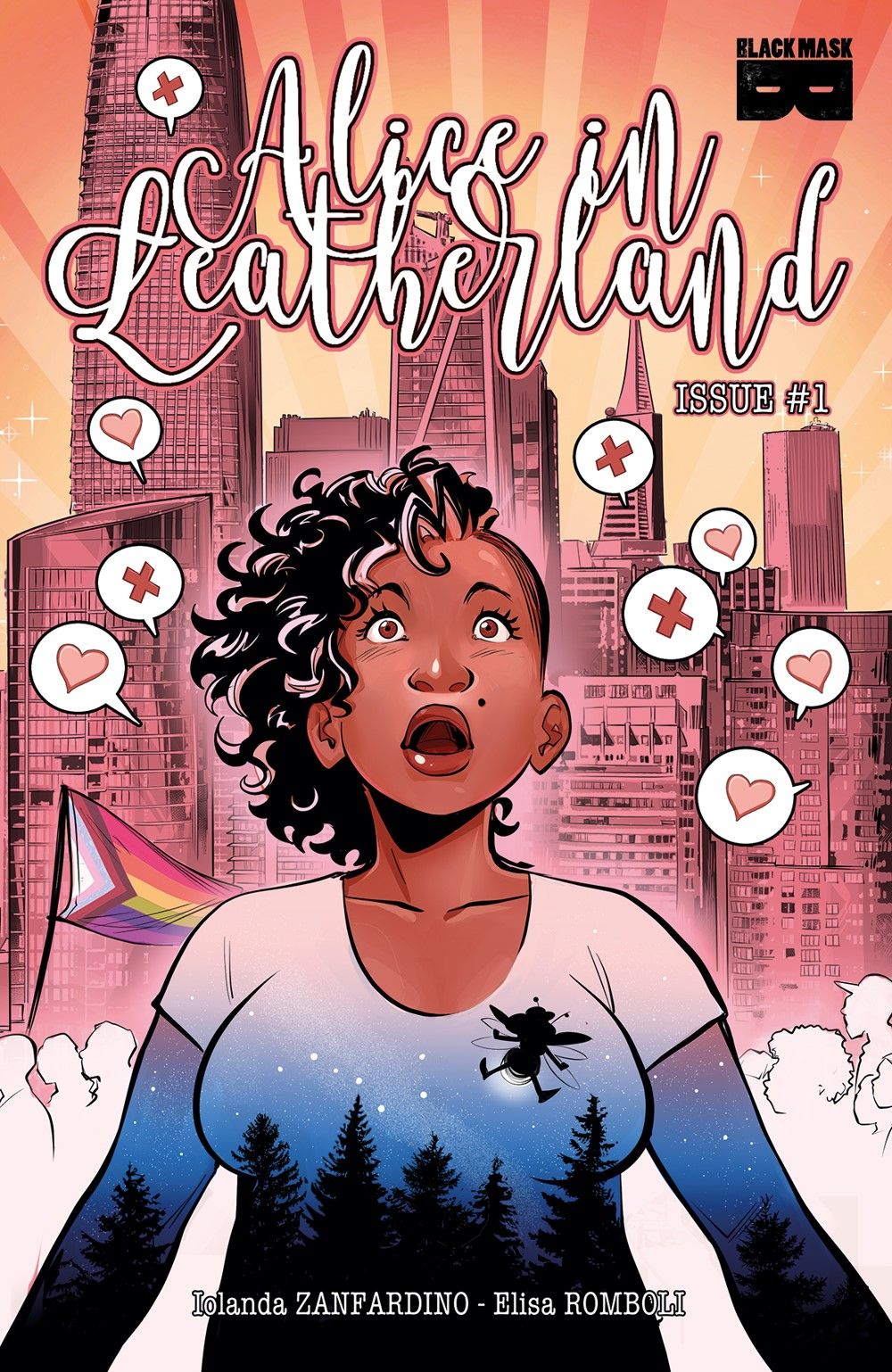 Created by real-life couple Iolanda Zanfardino (writer) and Elisa Romboli (artist) while they were in pandemic lockdown together, ALICE IN LEATHERLAND is a new comic book mini-series from Black Mask Studios, the Los Angeles based indie publisher of acclaimed titles including CALEXIT, BLACK, 4 KIDS WALK INTO A BANK, LOUD, and DESTINY, NY. Together, Iolanda and Elisa have created a diverse sex comedy and a very modern romantic comedy all in one, celebrating its diverse ensemble's joys, kinks, and loves.