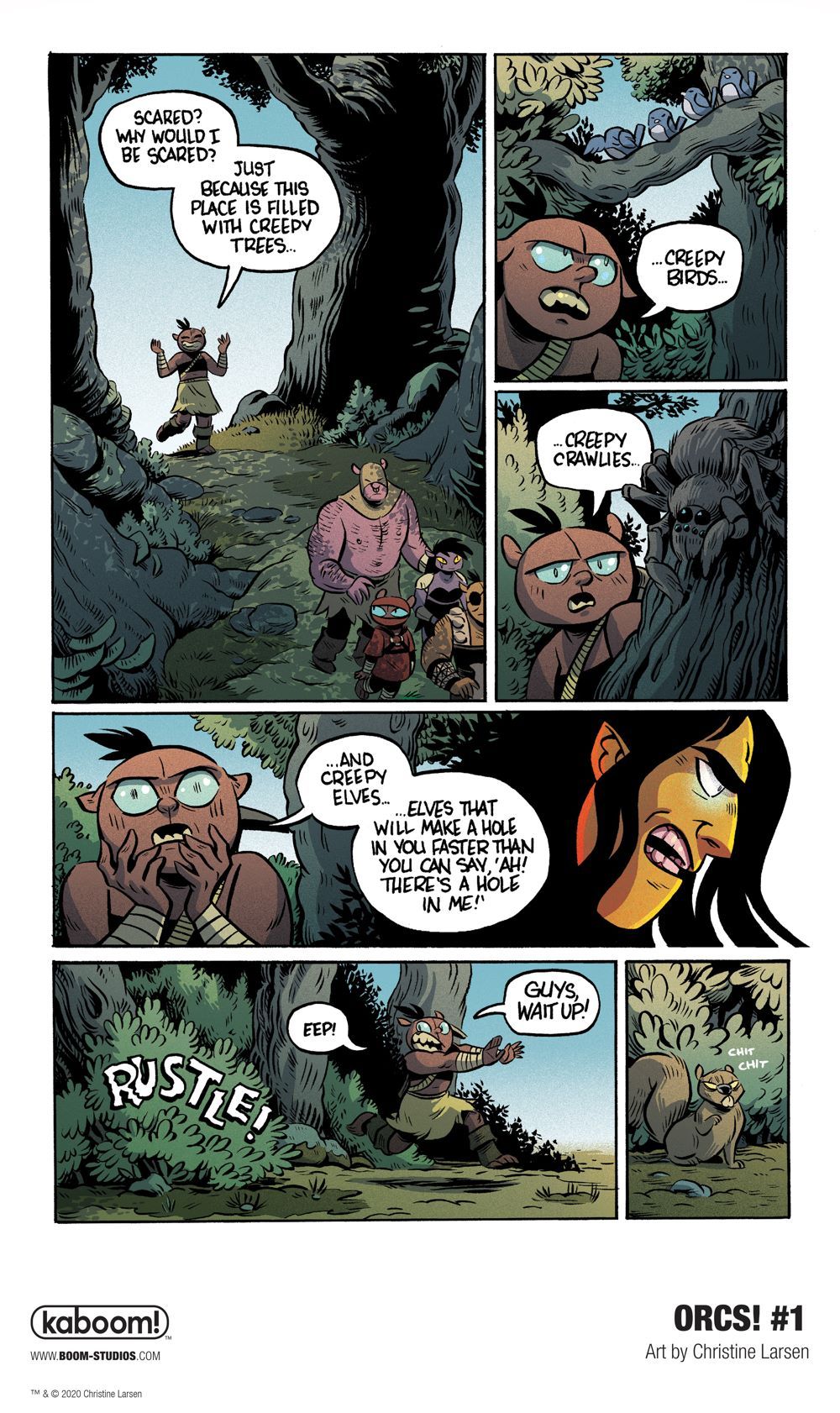 "Christine Larsen brings a wicked sense of humor and incredibly fun illustrations to this series about the misunderstood characters from your typical fantasy quest finally getting a chance to step up and be the heroes of their own story," said Shannon Watters, Senior Editor, BOOM! Studios. "If you've ever played Dungeons & Dragons, read a fantasy novel, or played an online quest and wondered about all the characters left in the dust, ORCS! is the story you've been waiting for."
