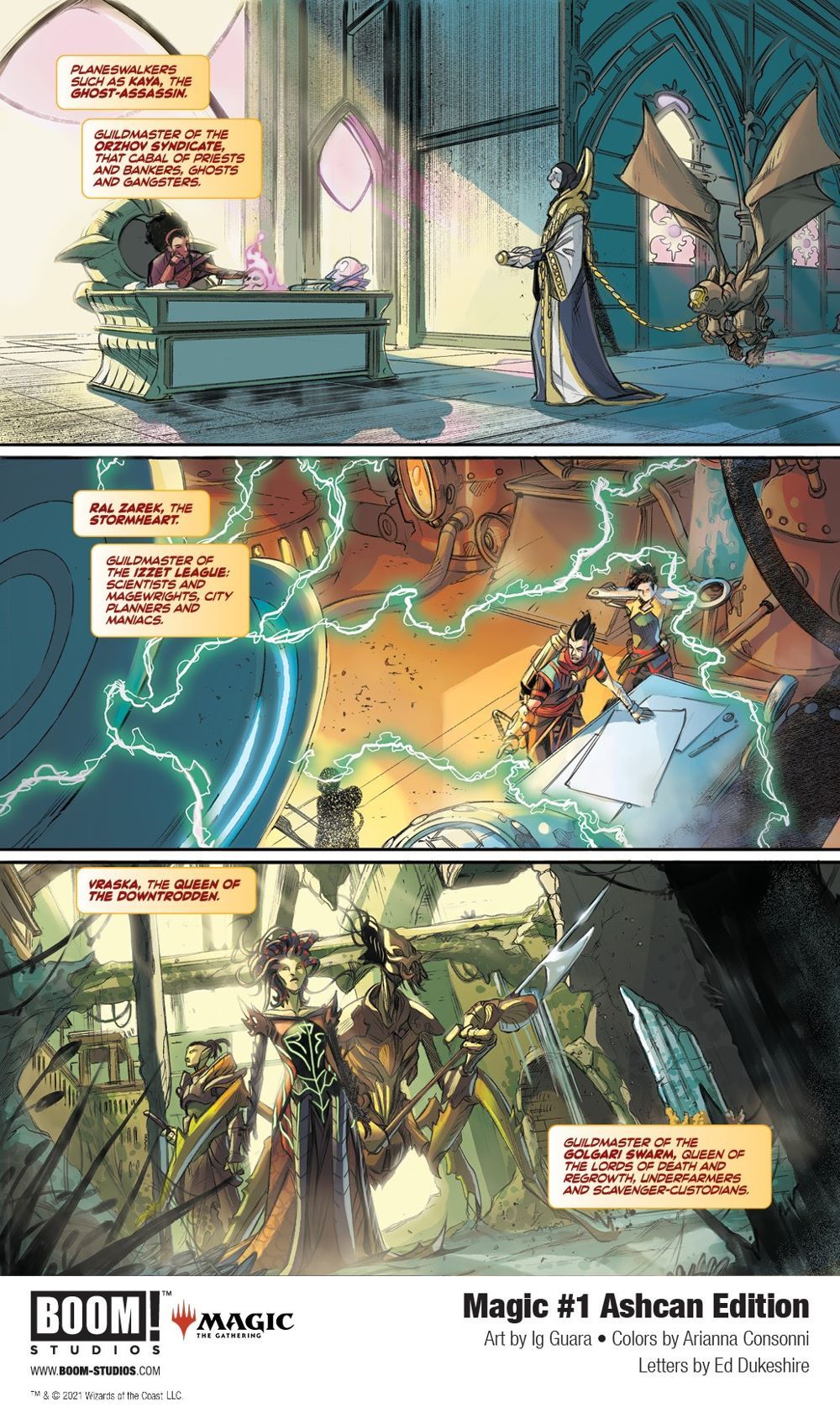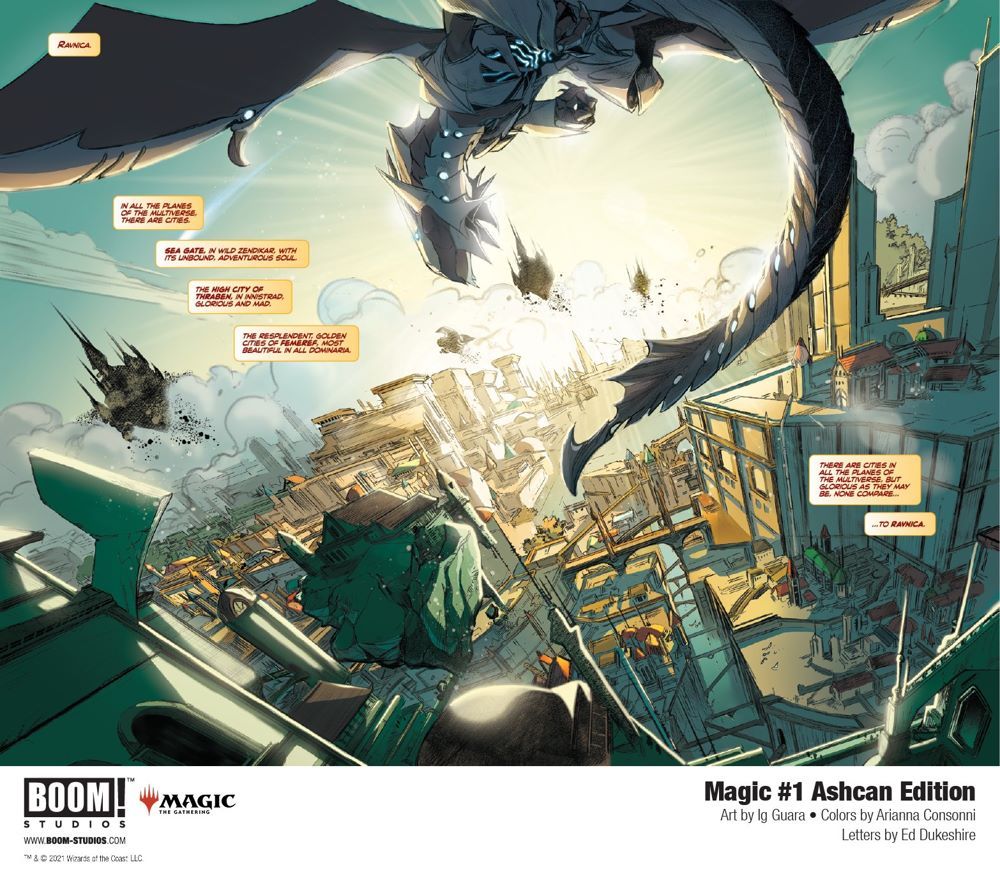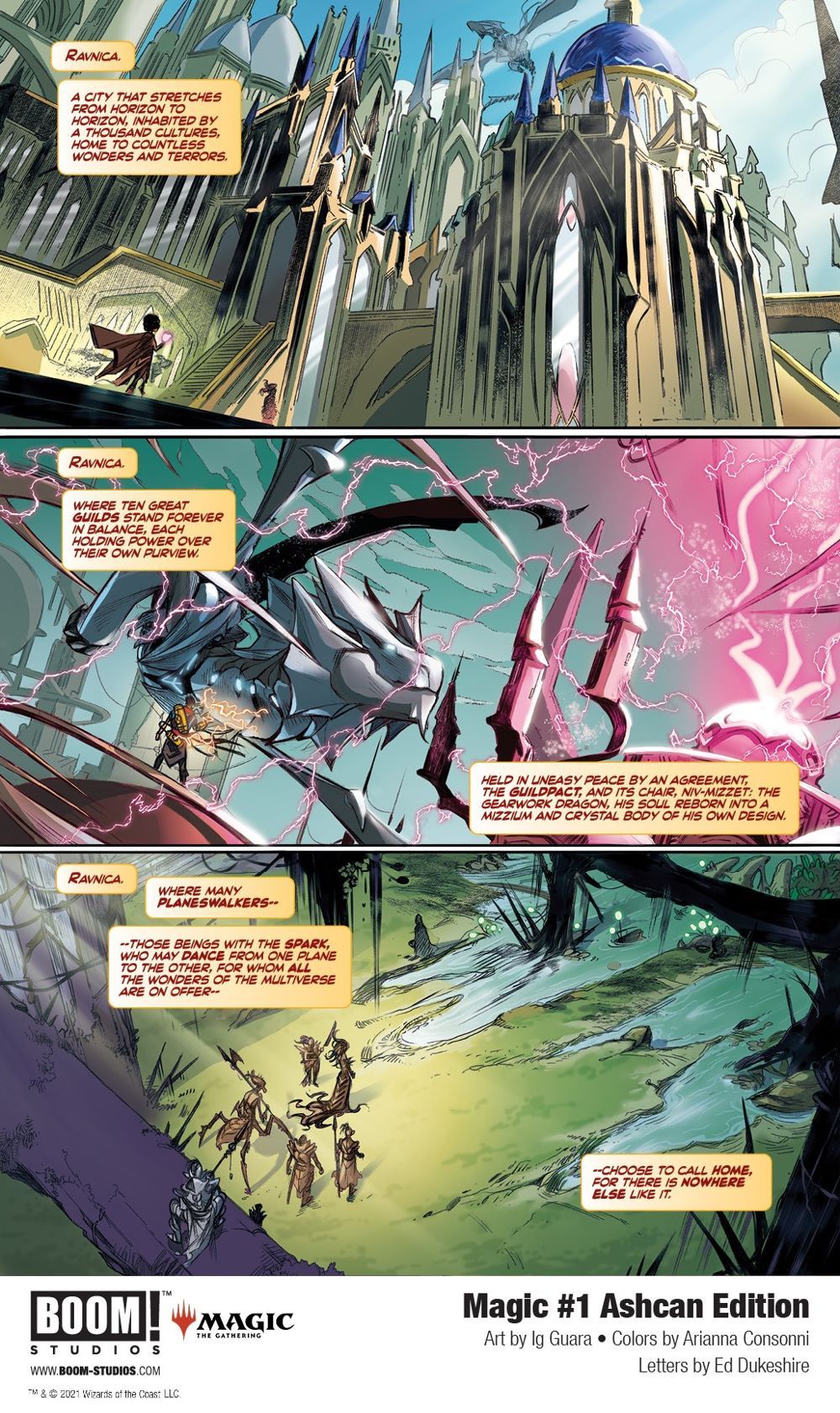 Media Release -- BOOM! Studios, under license by Hasbro, Inc. (NASDAQ: HAS) and in partnership with Wizards of the Coast LLC, revealed today a brand new first look at MAGIC #1, the premiere issue of -the new original comic book series from acclaimed writer Jed MacKay (Marvel's Black Cat), artist Ig Guara (Marvel's Ghost-Spider), colorist Arianna Consonni, and letterer Ed Dukeshire, perfect for new readers and long--time fans, available in April 2021.