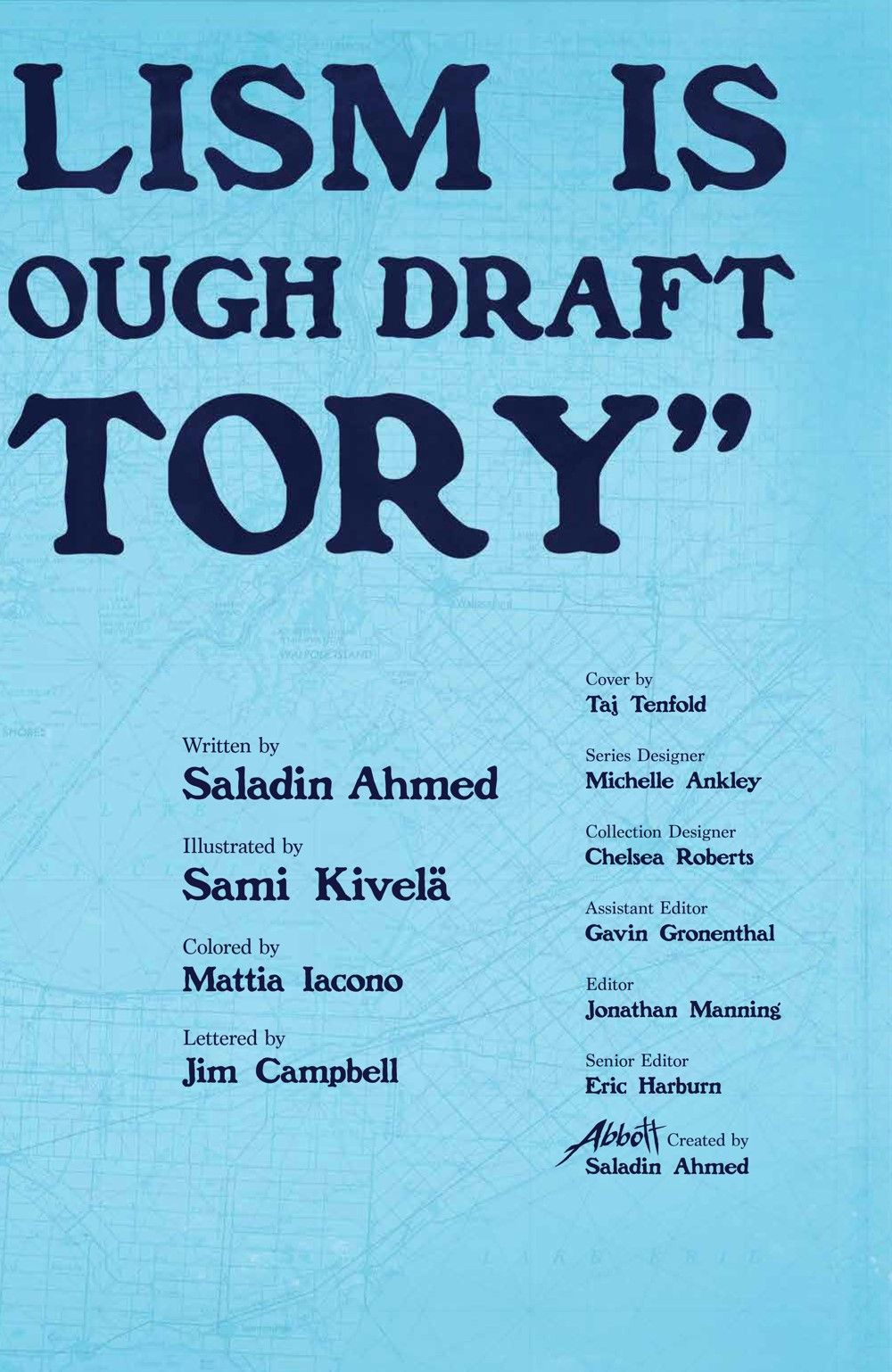 A WAR FOR THE SOUL OF DETROIT. Elena Abbott is one of Detroit's toughest reporters—and after defeating the dark forces that murdered her husband, she's focused on the most important election in the city's history. But when someone uses dark magic to sabotage the campaign of the prospective first Black mayor of Detroit, it becomes clear to Abbott that the supernatural conspiracy in her city is even greater than she ever imagined. Now Abbott must exhaust all her abilities as a reporter and a supernatural savior to rescue Detroit—but at what cost to her own life? Miles Morales: Spider-Man mastermind & Eisner Award-winning writer Saladin Ahmed and acclaimed Machine Gun Wizards artist Sami Kivelä return to the Hugo Award-nominated world of Abbott, as the eponymous unstoppable reporter tackles a new corruption taking over Detroit in 1973 and the supernatural threat behind it. Collects Abbott: 1973 #1-5.
