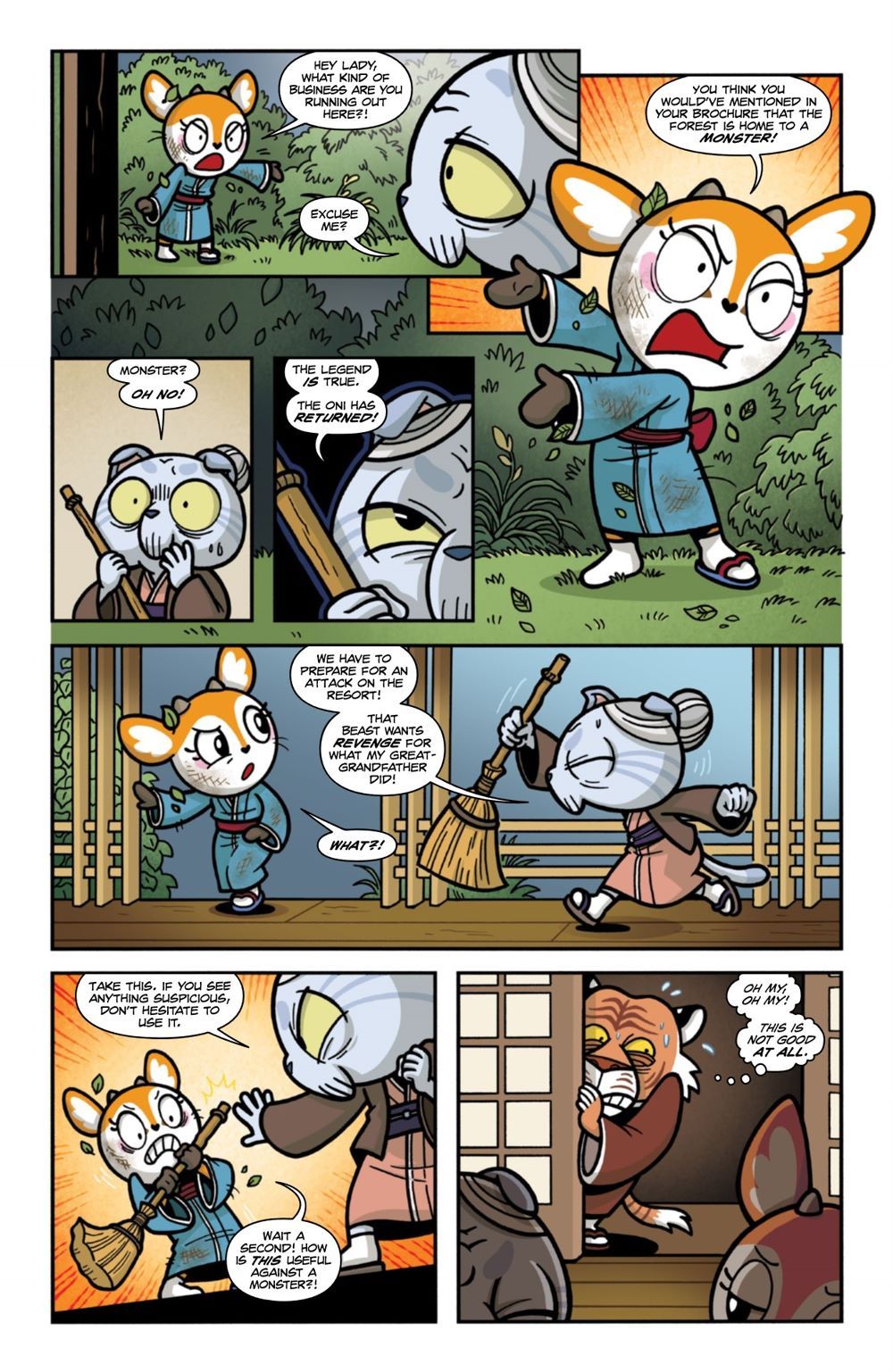 Tsunoda sees the "oni" spirit in the woods and raises the alarm within the resort, causing a confrontation between an exhausted Retsuko and the rest of the resort staff. Meanwhile, Gori, Haida, and Fenneko are on their way to the resort, expecting to find a super-relaxed Retsuko. Little do they know...