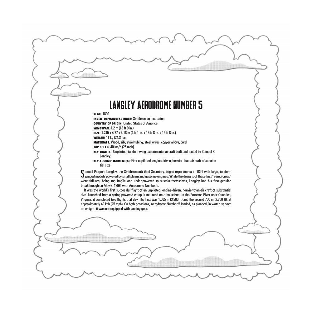 Each page of Airplanes: A Smithsonian Coloring Book not only stands alone as a work of art, but is also accompanied by brief and fascinating insights from the museum's Aeronautics experts about each aircraft, ensuring that time spent coloring is also time spent learning.