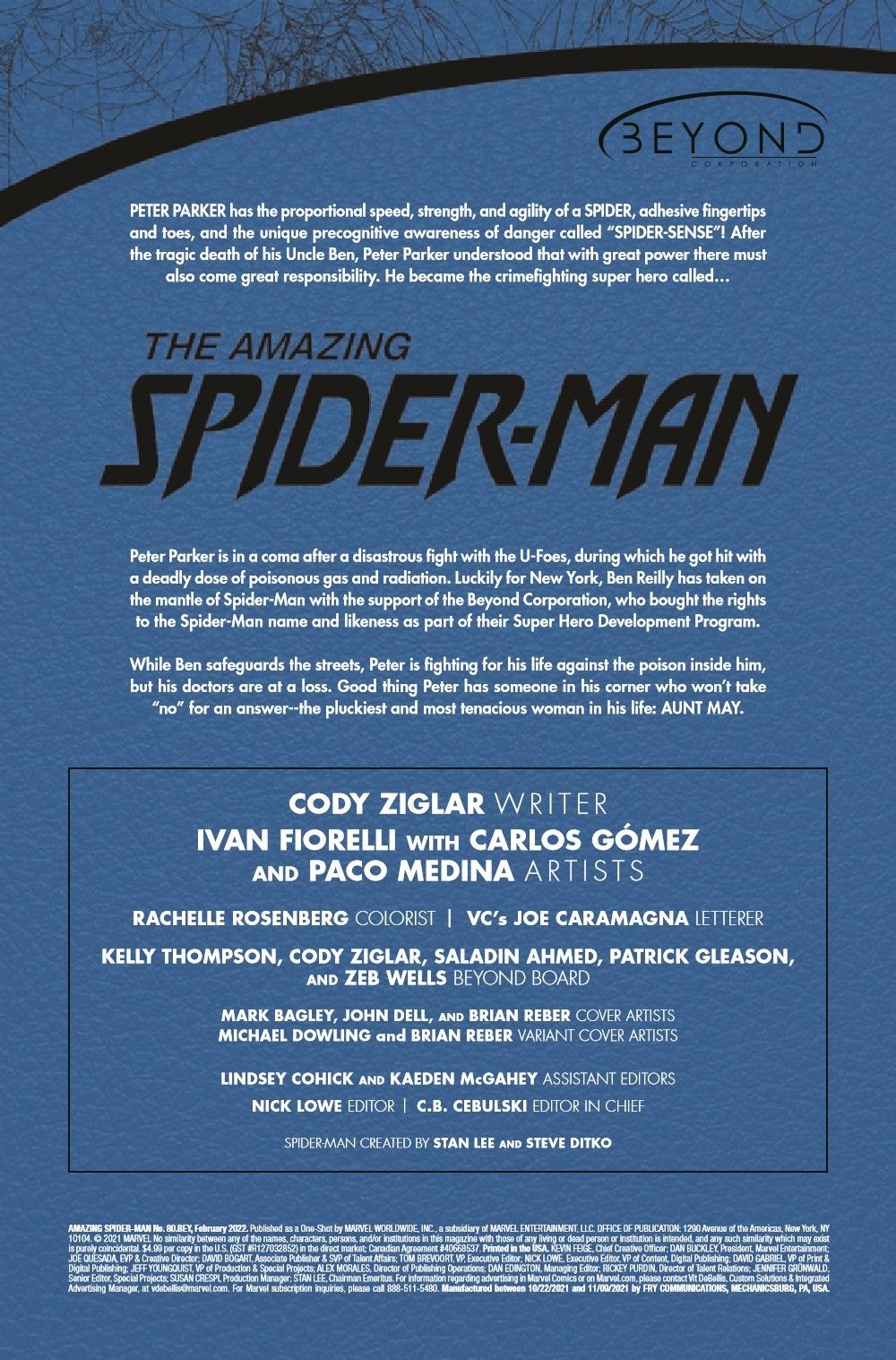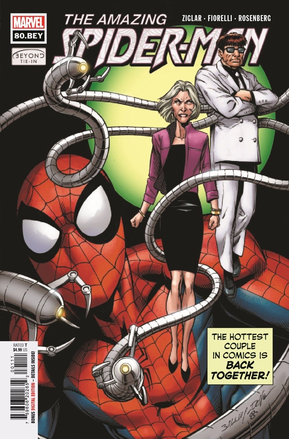 With her nephew at death's door, May Parker is not just going to sit around accepting that Peter's ailments aren't solvable with conventional means. Aunt May is going to seek UNCONVENTIONAL MEANS by way of her ex-fiancé DOCTOR OCTOPUS!!! One of the most controversial couples in comics history is back together, and they're Peter Parker's only hope of living through BEYOND!