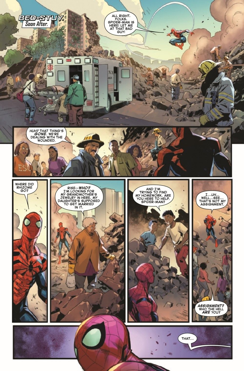 It's new Spider-Man vs. newest Spider-Man!!! The Beyond Corporation paid a lot of money for the Spider-Man trademark and does not take kindly to an unlicensed Spider-Man running around Brooklyn. So it's up to Ben Reilly to take Miles Morales down.