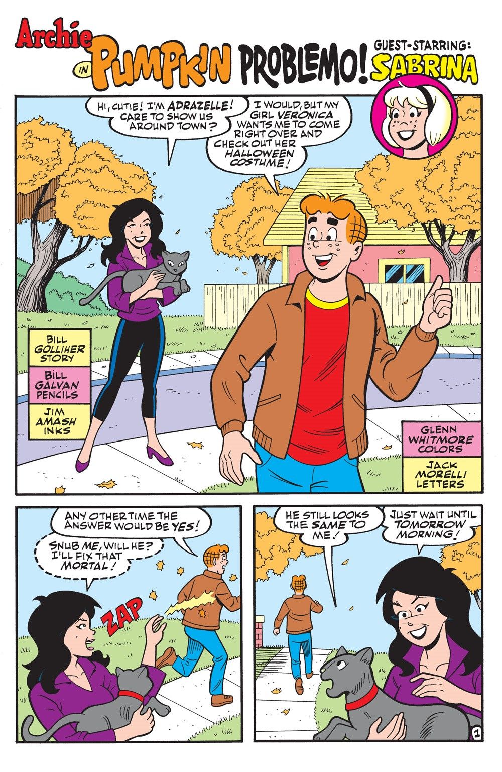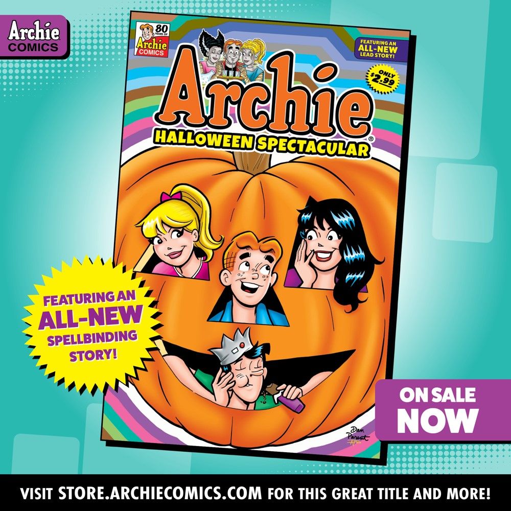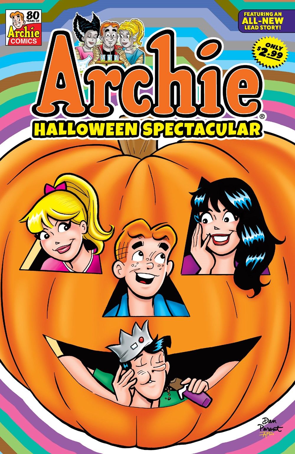 We're kicking off this hauntingly hilarious collection of Archie tales with a BRAND NEW STORY! In "Pumpkin Problem-o," when Archie unknowingly rebuffs a witch friend of Sabrina's he wakes up Halloween morning with a Jack-o-lantern head complete with the cross hatching on the side! Even worse, he can't convince anyone it's real and not a costume! Will our pumpkin-headed friend turn back to a teen before midnight—or will he forever be stuck as an Arch-o-lantern? All that and more in this frightfully fun Halloween special!