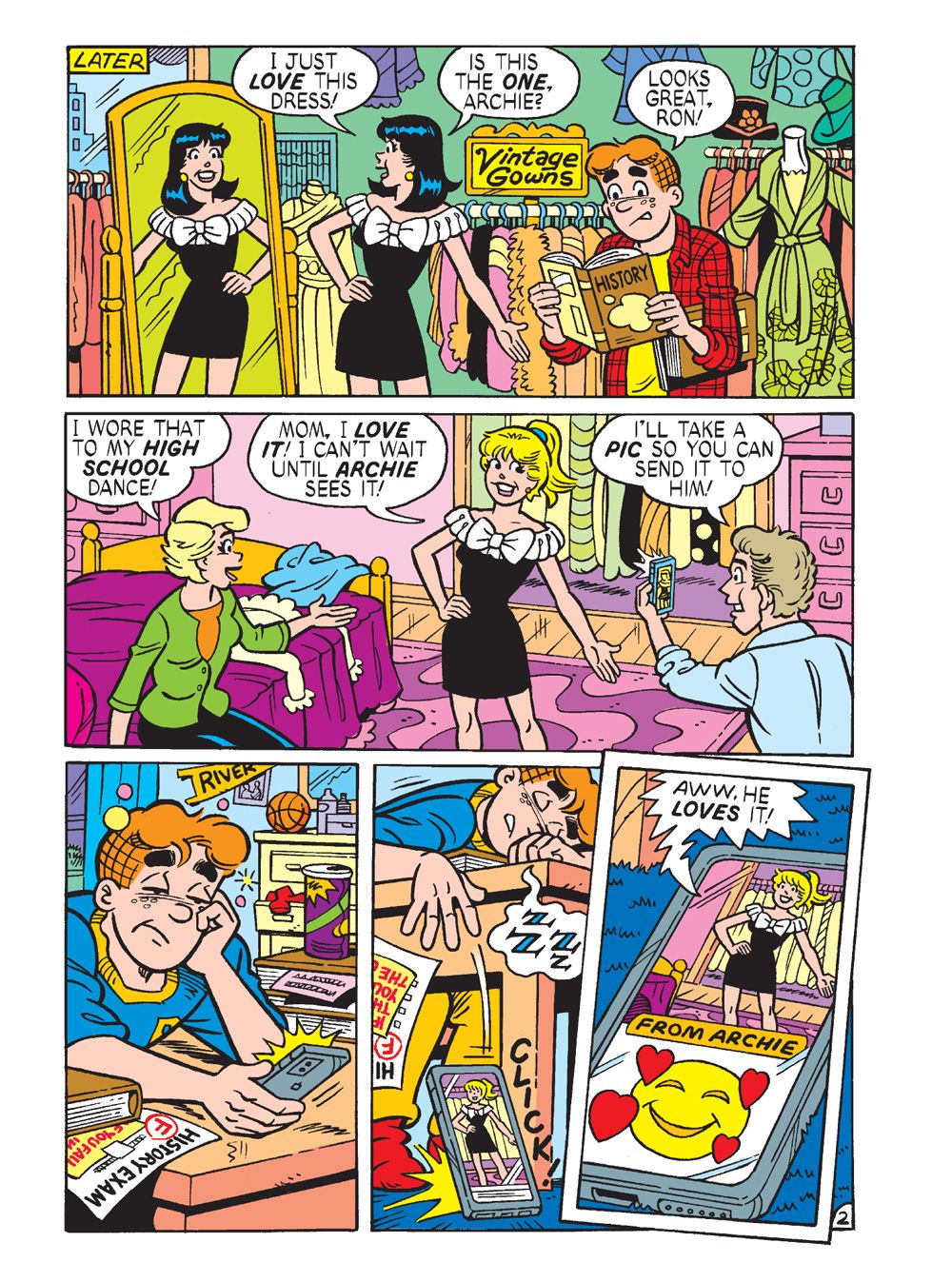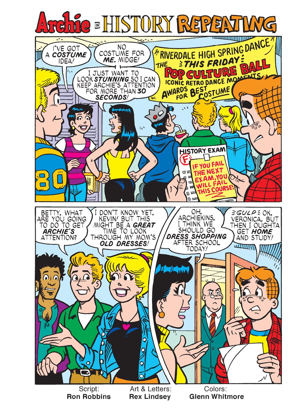 TWO NEW CLASSIC-STYLE STORIES! First, in "History Repeating" it's time for the annual Riverdale Spring Dance and everyone's getting into the spirit of the season—aka stressing out big time for the dance! Betty & Veronica discover they've bought the same exact dress thanks to the influence of Cheryl Blossom! Kevin's trying to make sure Cheryl doesn't ruin the entire engagement and Jughead is . . . well, being Jughead. While everyone's spring fling is turning into a spring disaster, can Archie swoop in to save the day?