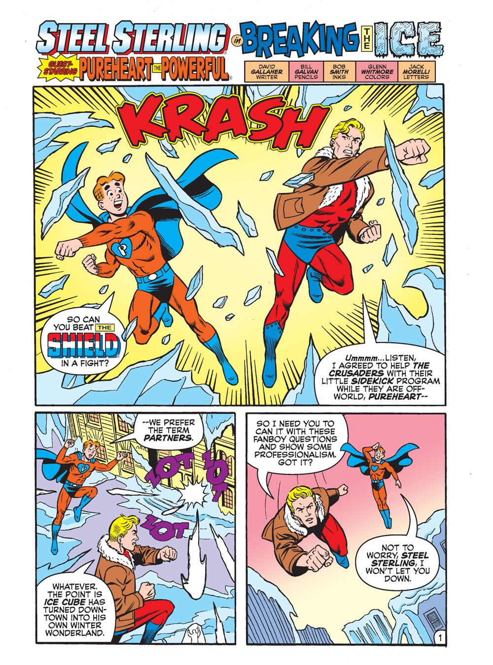 Then, we have "Breaking the Ice", a brand-new Steel Sterling story that sees the hero taking on one of the most difficult tasks he's had to yet—mentoring a new, young hero. Namely, Pureheart the Powerful! Can Pureheart prove to Sterling that he's more than just sidekick material, and has what it takes to be a full-fledged superhero all his own?