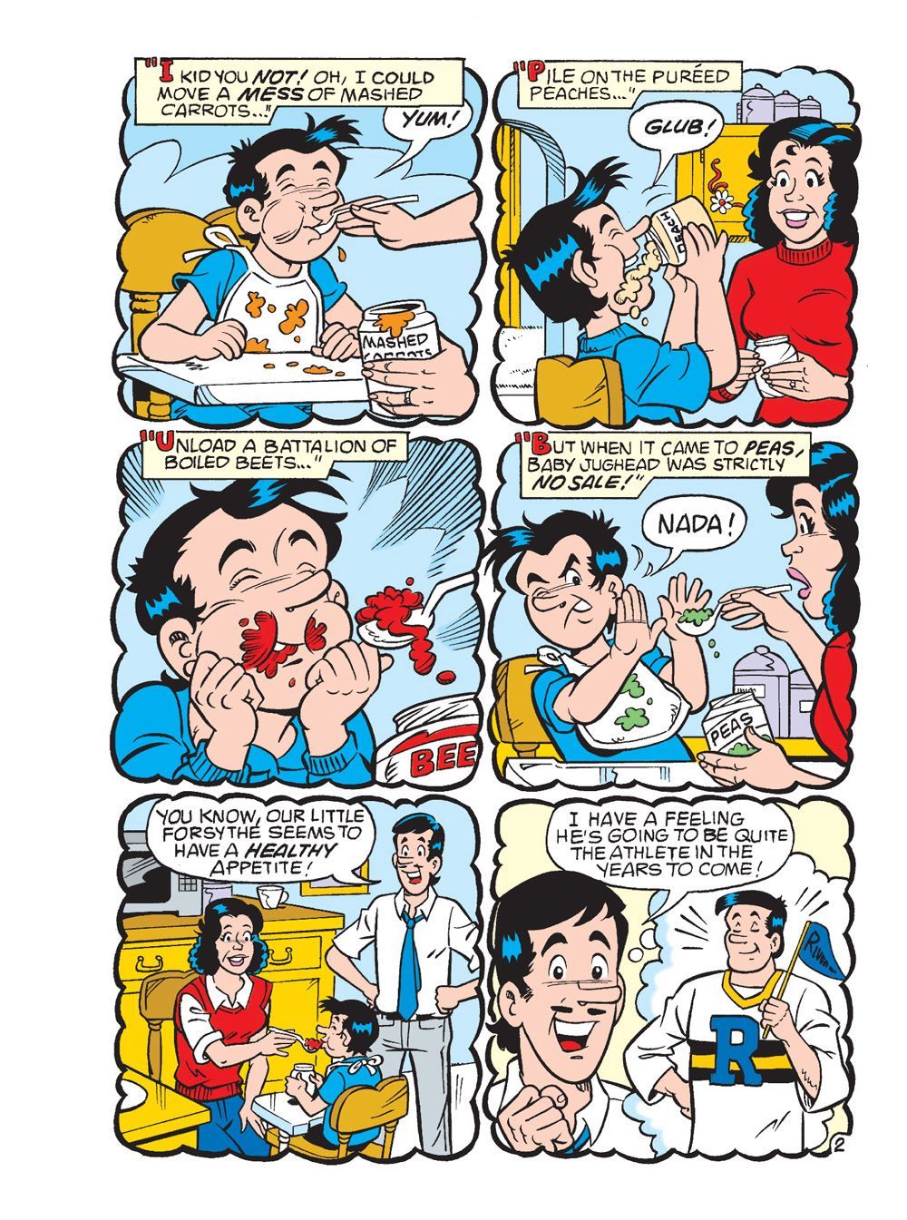 We're continuing Archie Comics' landmark 80th Anniversary celebration with another special showcase digest! This time, we revisit the hilarious never-before-reprinted "A Jughead in the Family" storyline: Jughead gets into a fight with his dad and moves out—but who's willing to take him in? Join in on the hilarity as Jughead moves from place to place, living with the families of Archie, Ethel, Moose, Trula Twyst, and even Reggie!