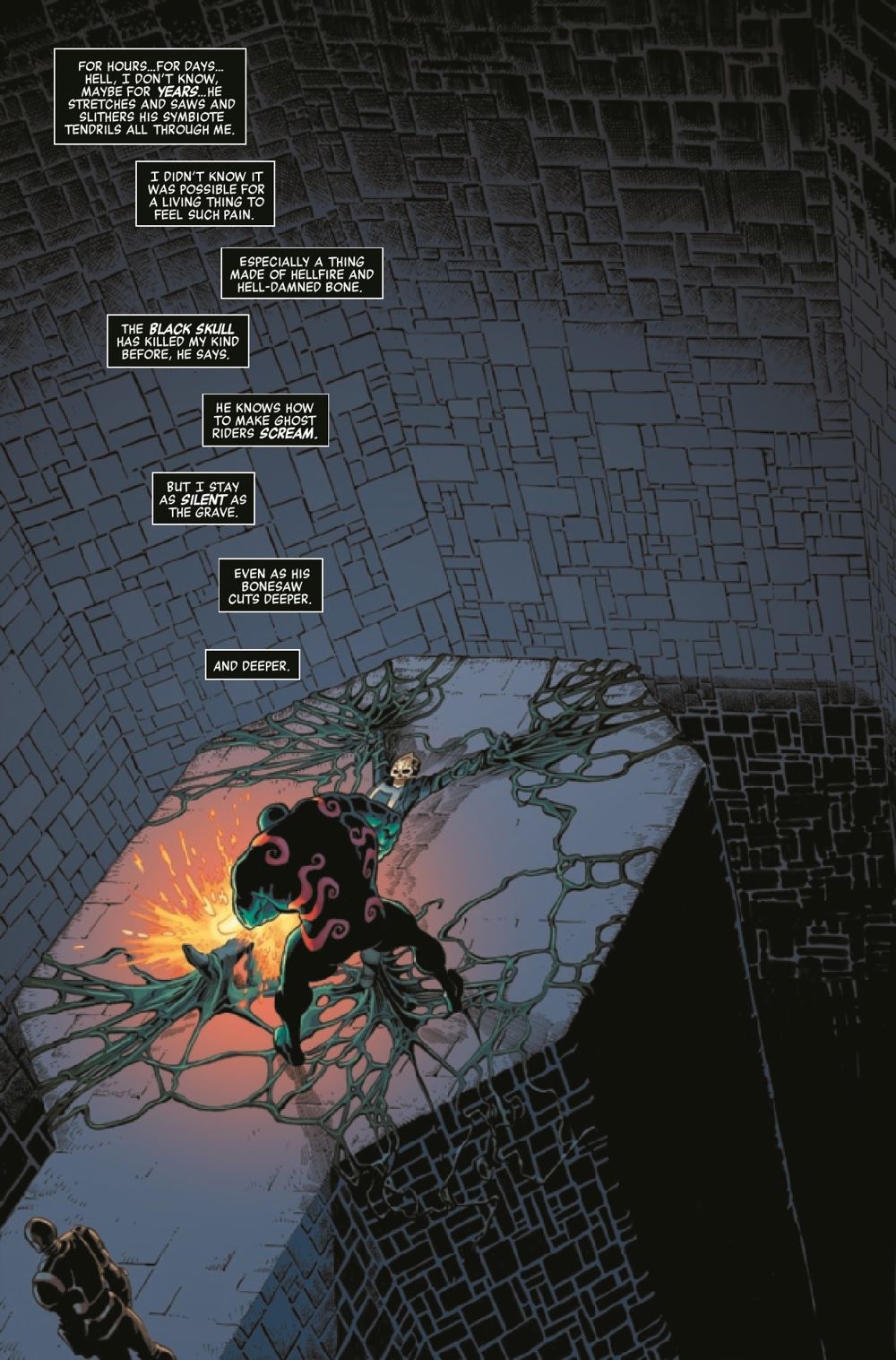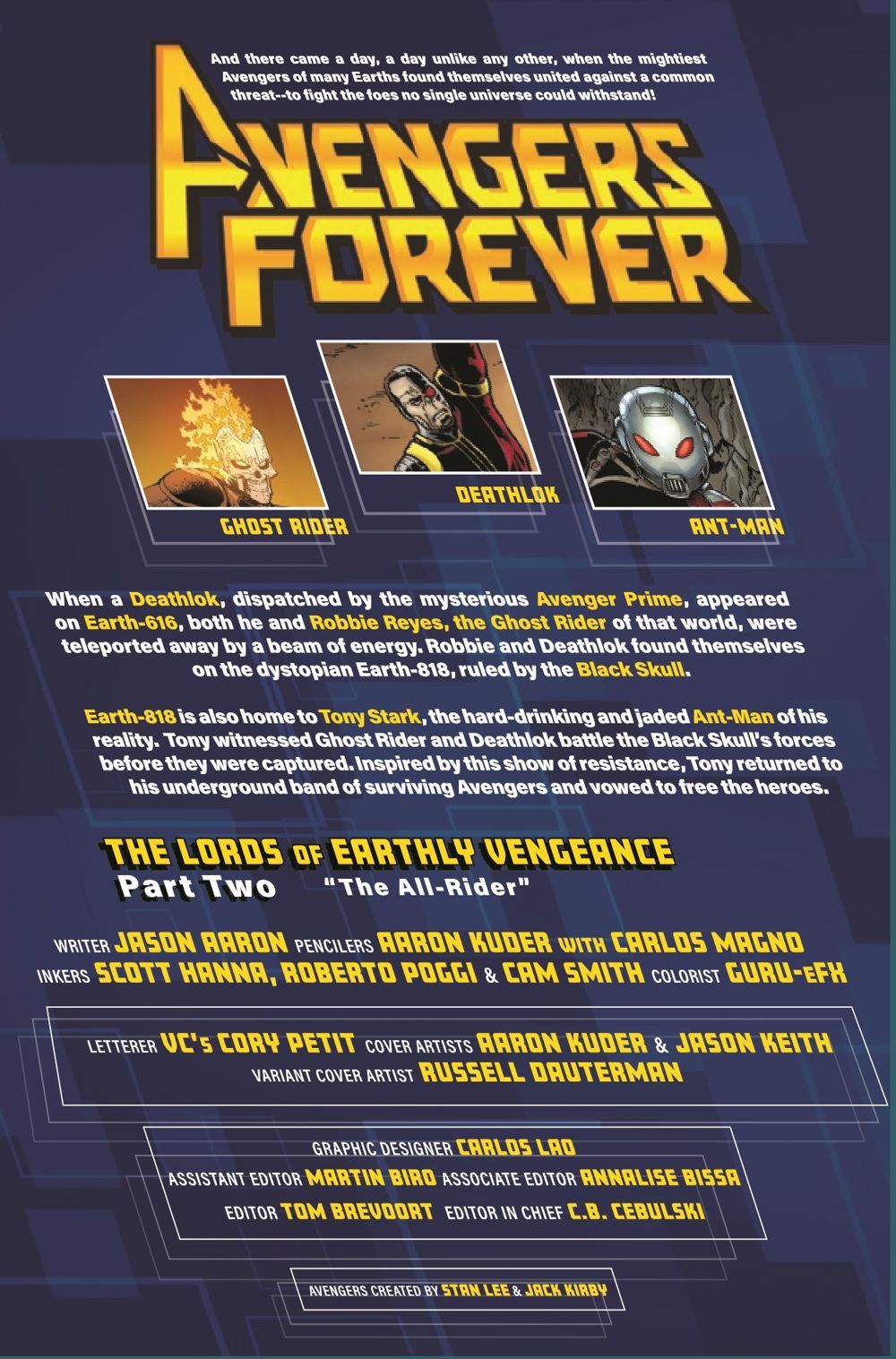 VENGEANCE IN THE WASTELAND! On an alternate Earth ravaged by the multiversal Masters of Evil, Ghost Rider Robbie Reyes has been taken prisoner by the planet's dark wastelords, the brutal War Machines. And what the Rider endures at their hands will change him forever - into the most unbridled force for vengeance any universe has ever seen. That's unless Ant-Man, Tony Stark and his bunch of ragtag heroes can pull off the mother of all rescues.