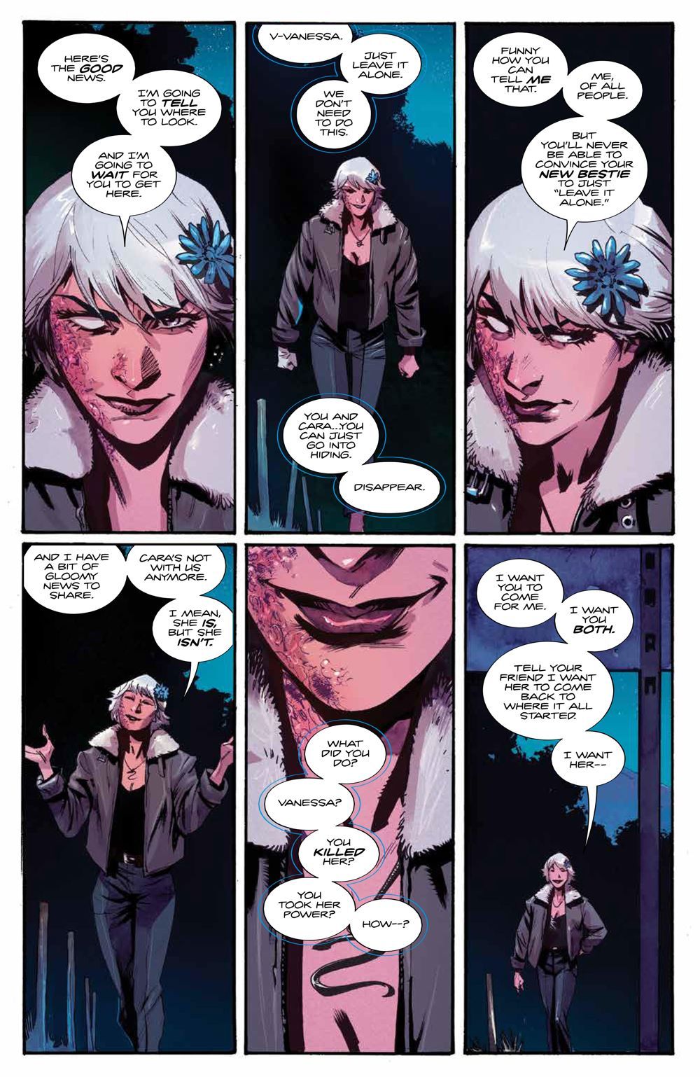 Vanessa descends upon another ghost town with the Faithful and Barret in tow, this time the one where Hannah's family died, and Hannah isn't far behind, on the hunt for Vanessa. In the aftermath of the confrontation, Vanessa retreats to the community where it all began, finding an eerie sight both familiar and unexpected.