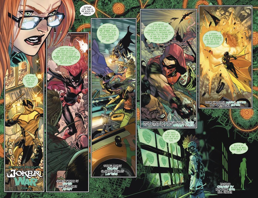 "The Joker War" comes to a city-shattering conclusion as Batman battles The Joker in a brutal, no-holds-barred duel! This is a fight 80 years in the making, and its outcome won't just change Batman's life—it will change Gotham City for years to come! Plus, catch the first glimpse of the new villain known as Ghost-Maker! And after the senses-shattering conclusion of "The Joker War" come a pair of short stories that will chart what's to come in Gotham City and Batman. Don't miss the first showdown between Batman and Clownhunter!
