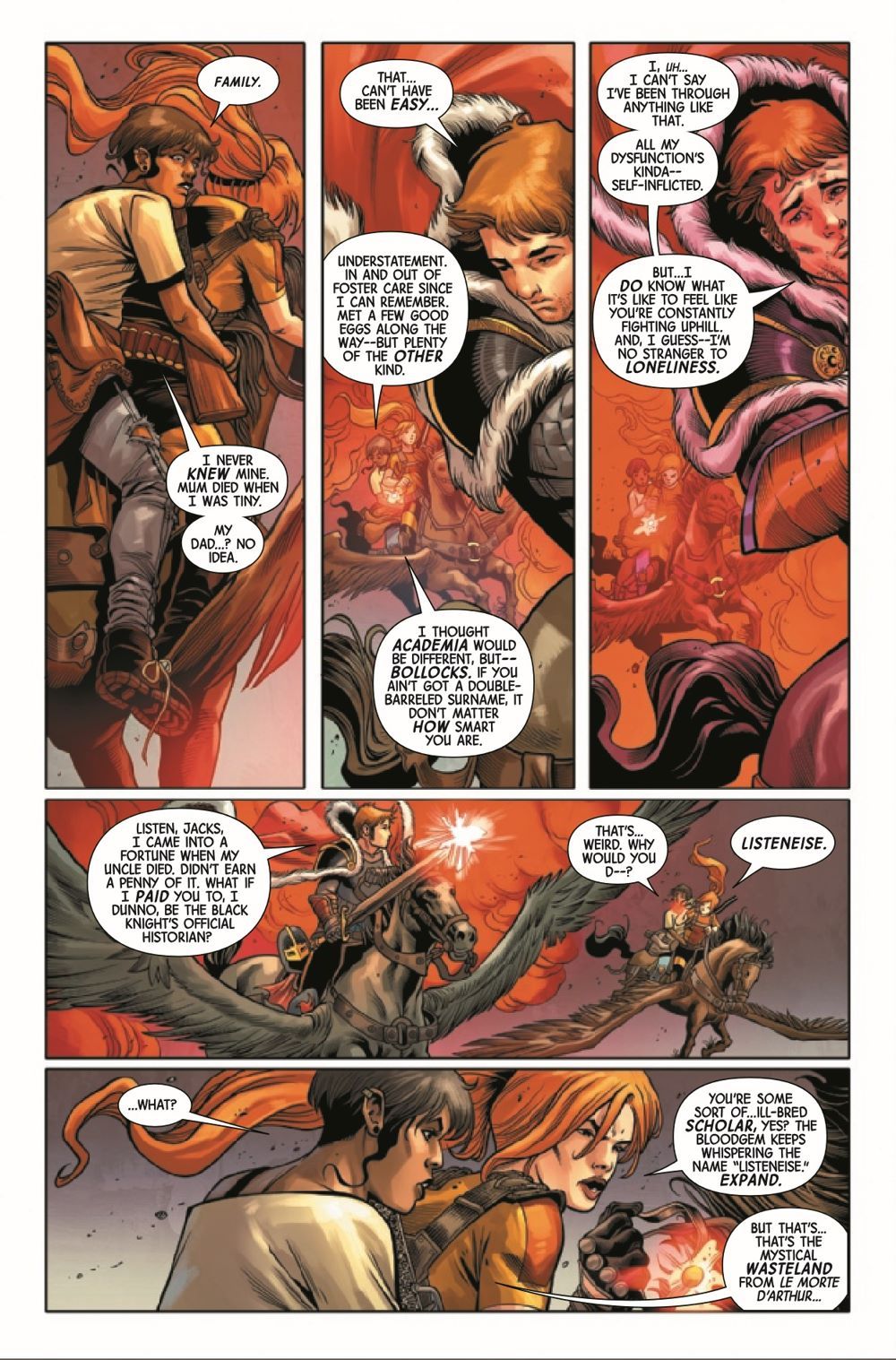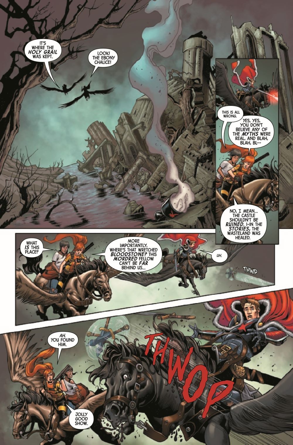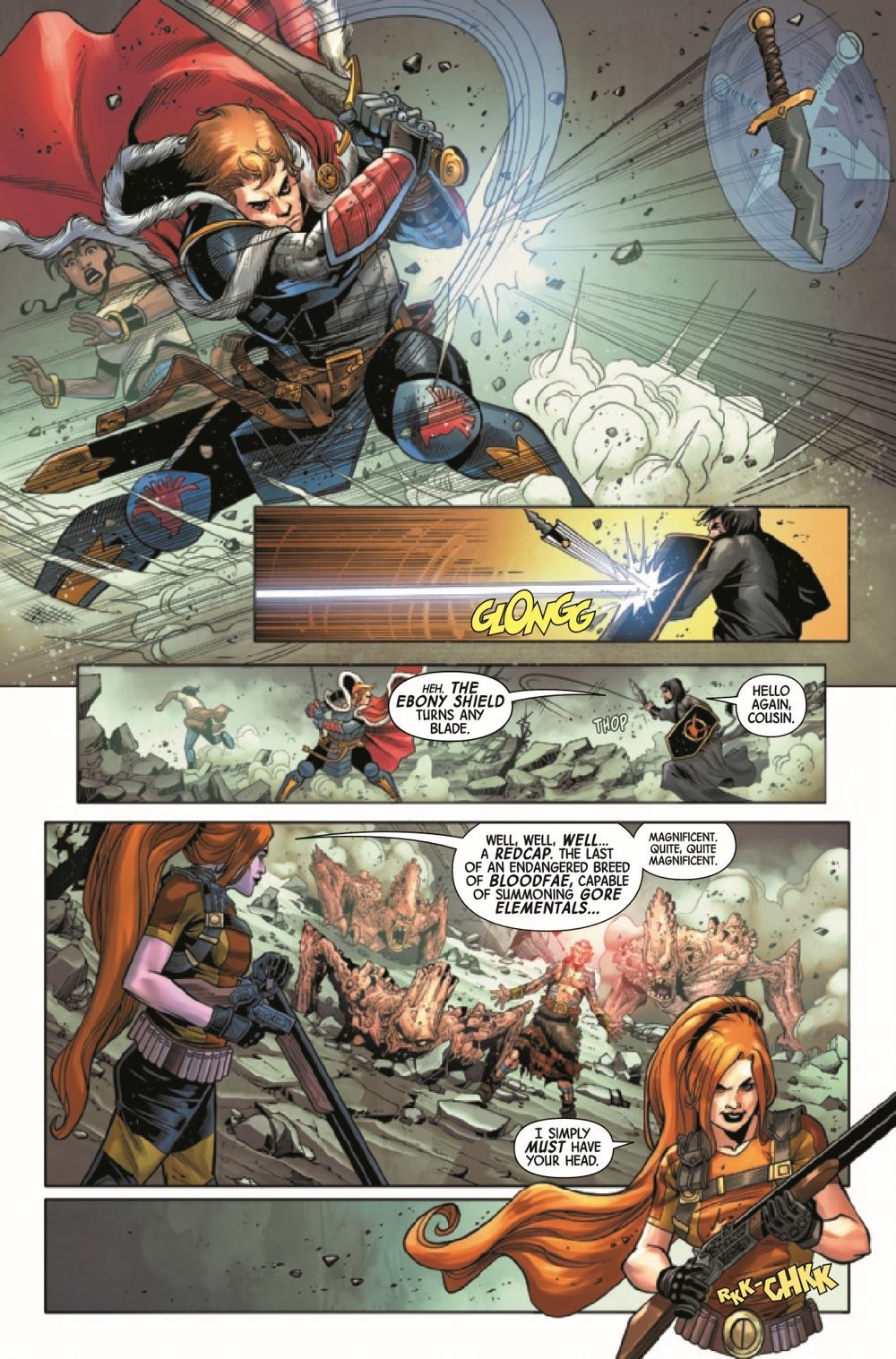 THE MIGHTY THOR VS. THE BLACK KNIGHT! • Dane Whitman wields the magical Ebony Blade as the BLACK KNIGHT! • He needs ELSA BLOODSTONE's help if he's going to stop an enemy's murderous hunt for the EBONY ARTIFACTS. • But the EBONY CHALICE lies beyond this world in a wasteland of dangerous fantasies and predatory magic. • Their battle in the present will reveal dangerous secrets of the past as THE MIGHTY THOR duels the first Black Knight at Camelot! • The Chalice's power, like the Ebony Blade's, comes at a terrible cost...is Dane willing to pay it?!
