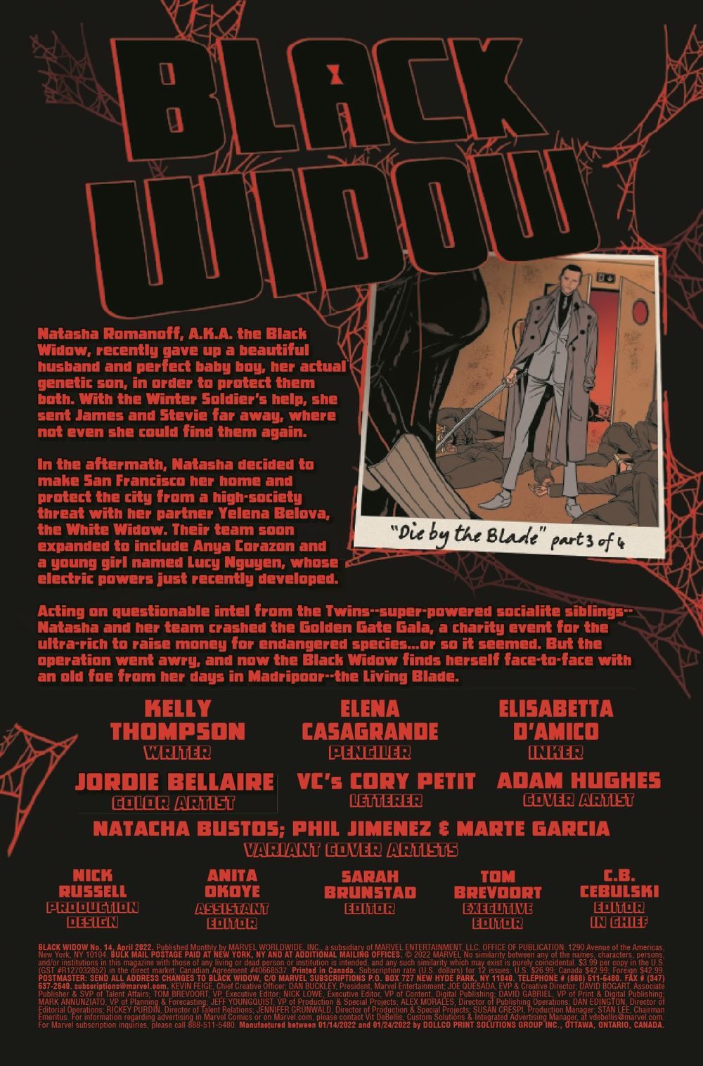 THE EISNER-WINNING SERIES BRINGS YOU A VILLAIN WORTH DYING FOR! Natasha Romanoff is known for having skeletons in her closet, but THE LIVING BLADE is the one skeleton she hoped she'd never encounter again. He nearly killed her the first time they tangled, years ago in Madripoor - will he finish the job this time at the bidding of THE HOST? Thompson and Casagrande reunite for Natasha's fight to save the people of San Francisco from a ruthless predator in their midst.