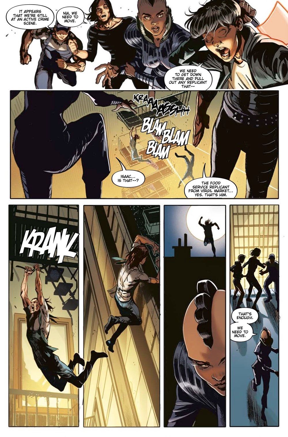 Enter the world of Blade Runner: 2009 and discover the untold origins of the Blade Runners! LAPD detective CAL MOREAUX has teamed up with an escaped experimental REPLICANT, who has been uploaded with the memories of a dead Tyrell Corporation scientist, whose suicide he was sent to investigate. FEATURES AN ALL-STAR CREATIVE TEAM including K. PERKINS (Supergirl), MELLOW BROWN (American Gods)