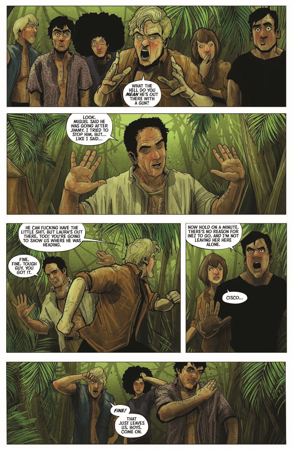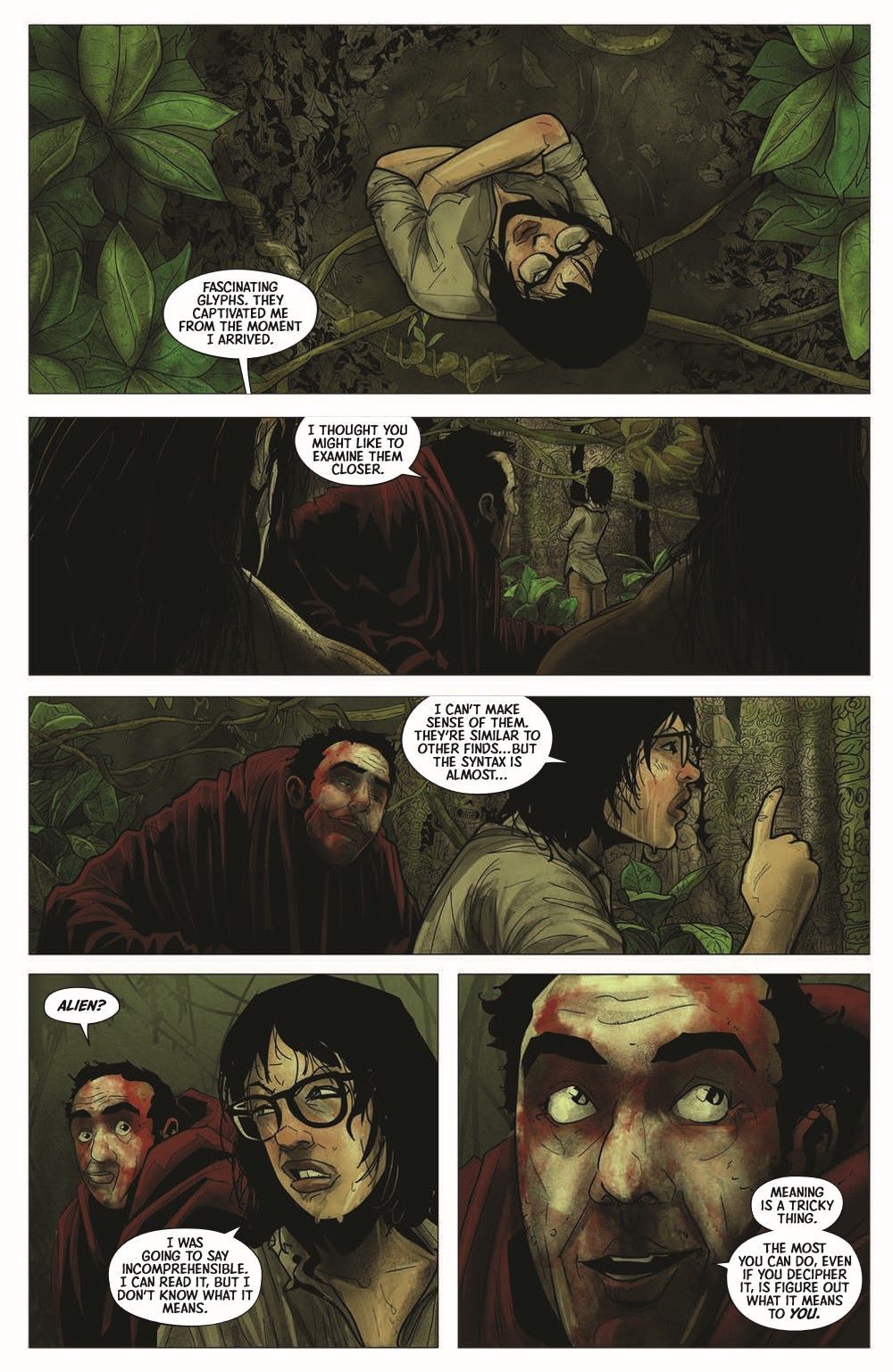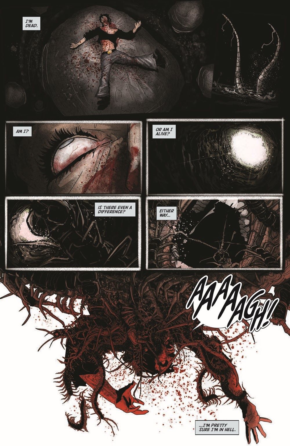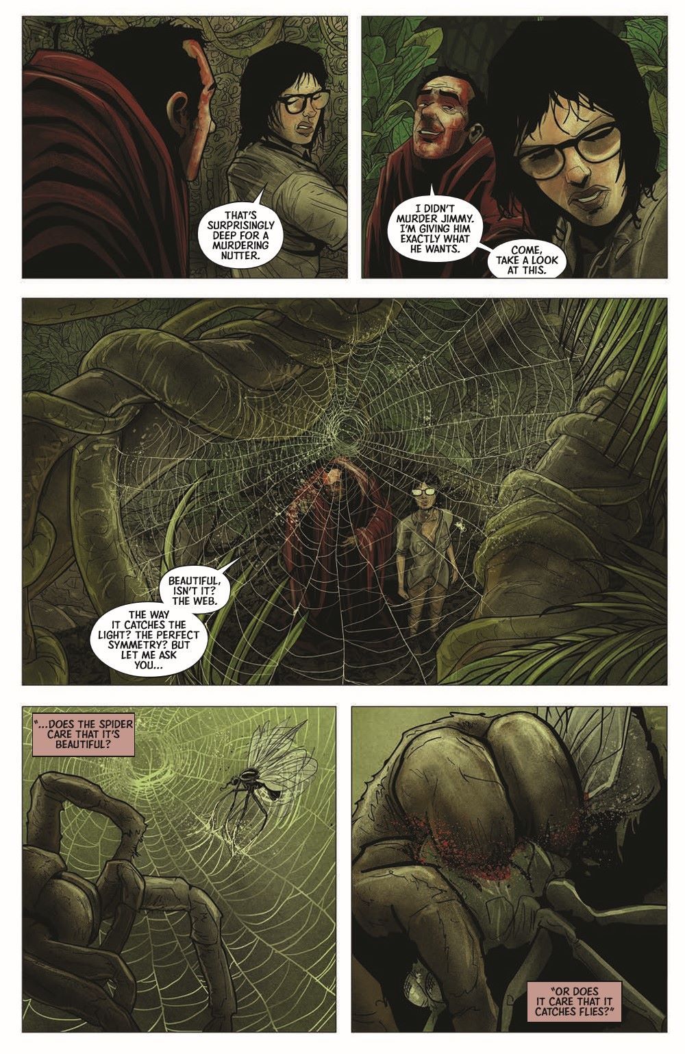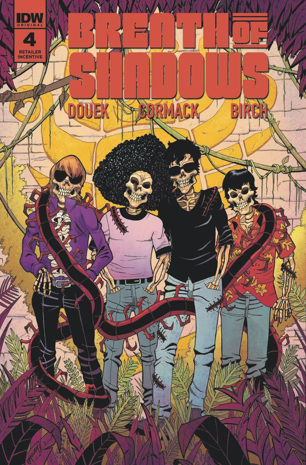 As our intrepid jungle wanderers reel from last issue's stunning revelation, Jimmy tries to navigate his way out of the pit he's found himself in. But does the real danger wait in the shadowy corners of the cave or the dark and twisting hallways of his mind?! The penultimate issue of this mind-bending horror tale from Rich Douek and Alex Cormack, the team behind Road of Bones and
