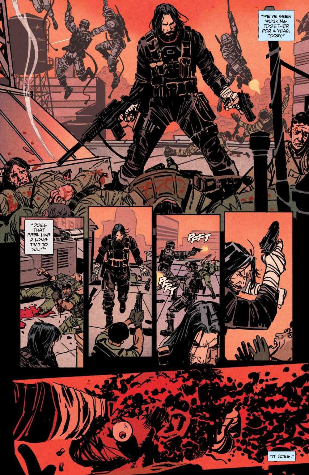 A WAR WITH NO END, A MAN WITH NO LIMITS. The man known only as B. is half-mortal and half-God, cursed and compelled to violence...even at the sacrifice of his sanity. But after centuries, B. may have finally found a refuge – working for the U.S. government to fight the battles too violent and too dangerous for anyone else. In exchange, B. will be granted the one thing he desires: the truth about his endless blood-soaked existence…and how to end it. Keanu Reeves makes his comic book writing debut alongside New York Times bestselling co-writer Matt Kindt (Folklords, Grass Kings) and acclaimed artist Ron Garney (Juggernaut) in a brutally violent new series about one immortal warrior's fight through the ages. Collects BRZRKR #1-4