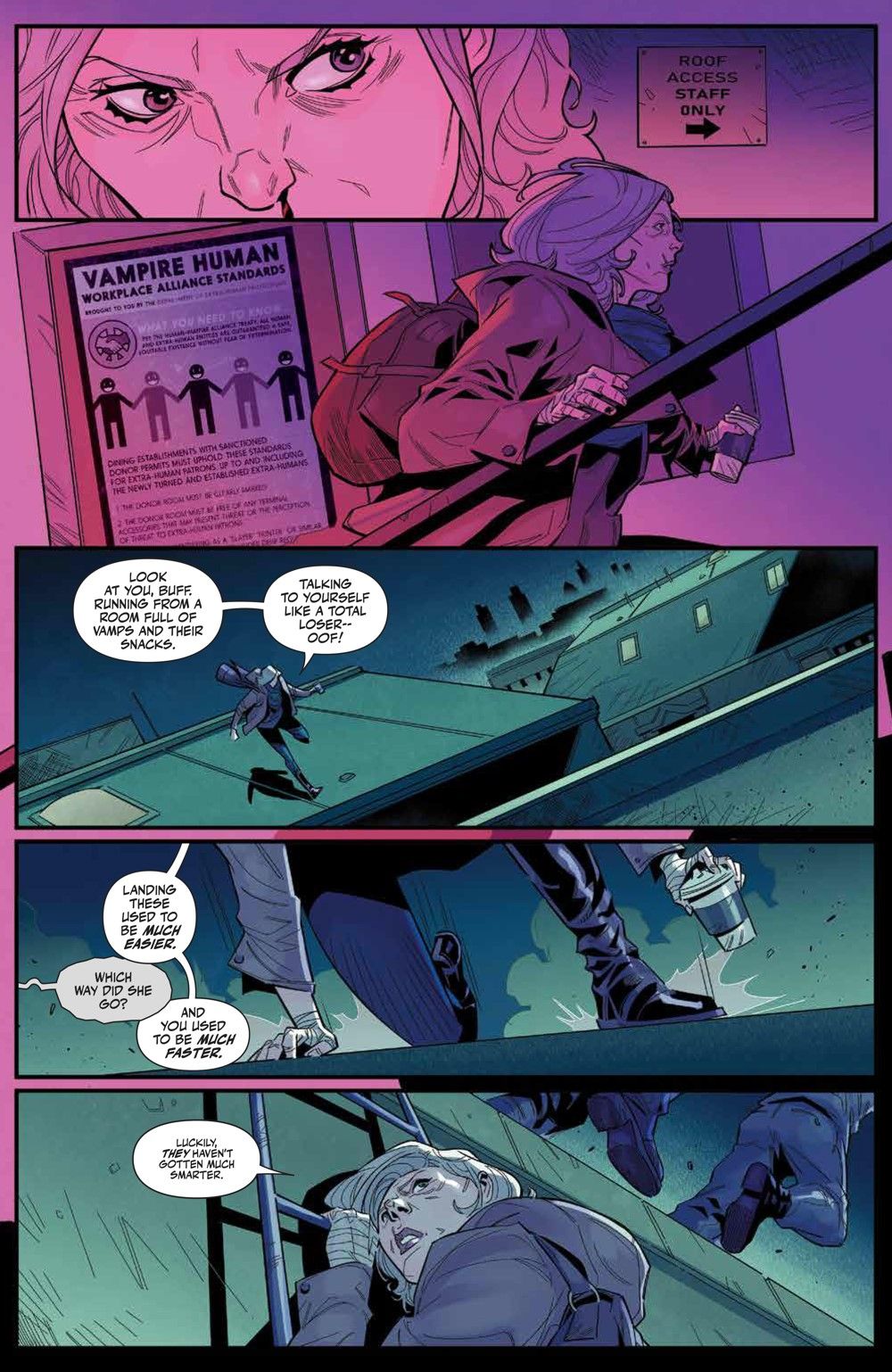 NEW SERIES. Can a lone Slayer save what's left of humanity? Buffy Summers is the last Slayer. Now in her 50s, she wages a one woman fight against the forces of darkness, who prey on humanity in the daylight unimpeded thanks to a magical catastrophe that has nearly blotted out the sun. The same disaster robbed Buffy of her friends and ended the Slayer-line, forcing her into an endless guerilla war. That is, until she stumbles across something she hasn't seen in a long time – hope, in the form of a prophecy and the young girl who carries it. The Multiverse explodes as writer Casey Gilly (Femme Magnifique, You Died) and artist Joe Jaro (Firefly) bring you a dystopian tale of Buffy Summers as you've never seen her before for fans of Wonder Woman: Dead Earth, Batman: Last Knight On Earth, and Future State: Wonder Woman.