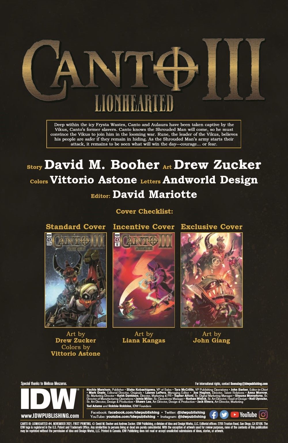 Fan-favorite CANTO continues! In the frozen north, Canto confronts someone he never thought he would see again. As the Shrouded Man's army approaches, Canto must make one last desperate plea to his old foe for aid. Even if Canto succeeds, will it be enough? Join the latest adventure in the Canto-verse that Major Spoilers called "a quest story to savor."
