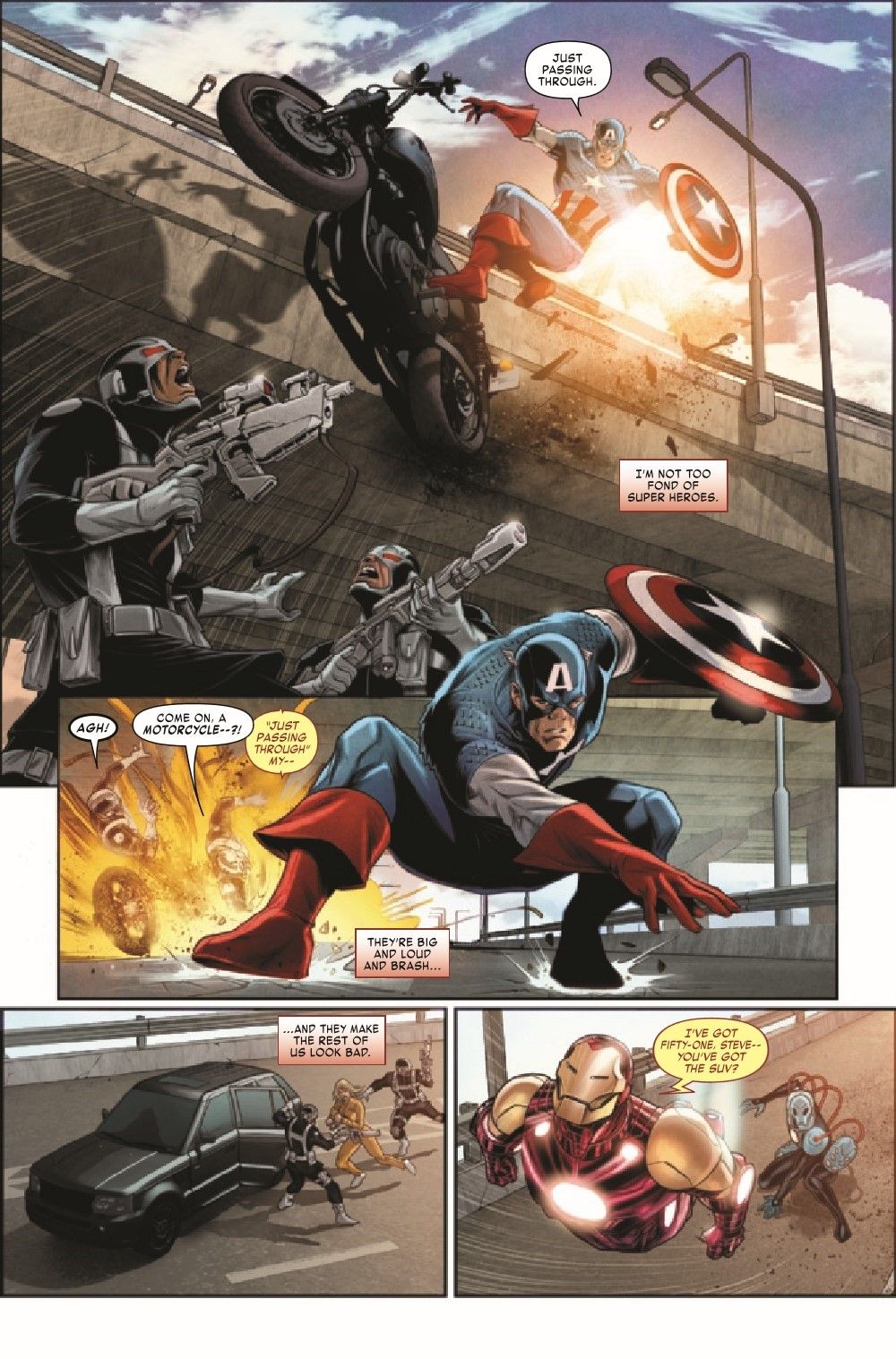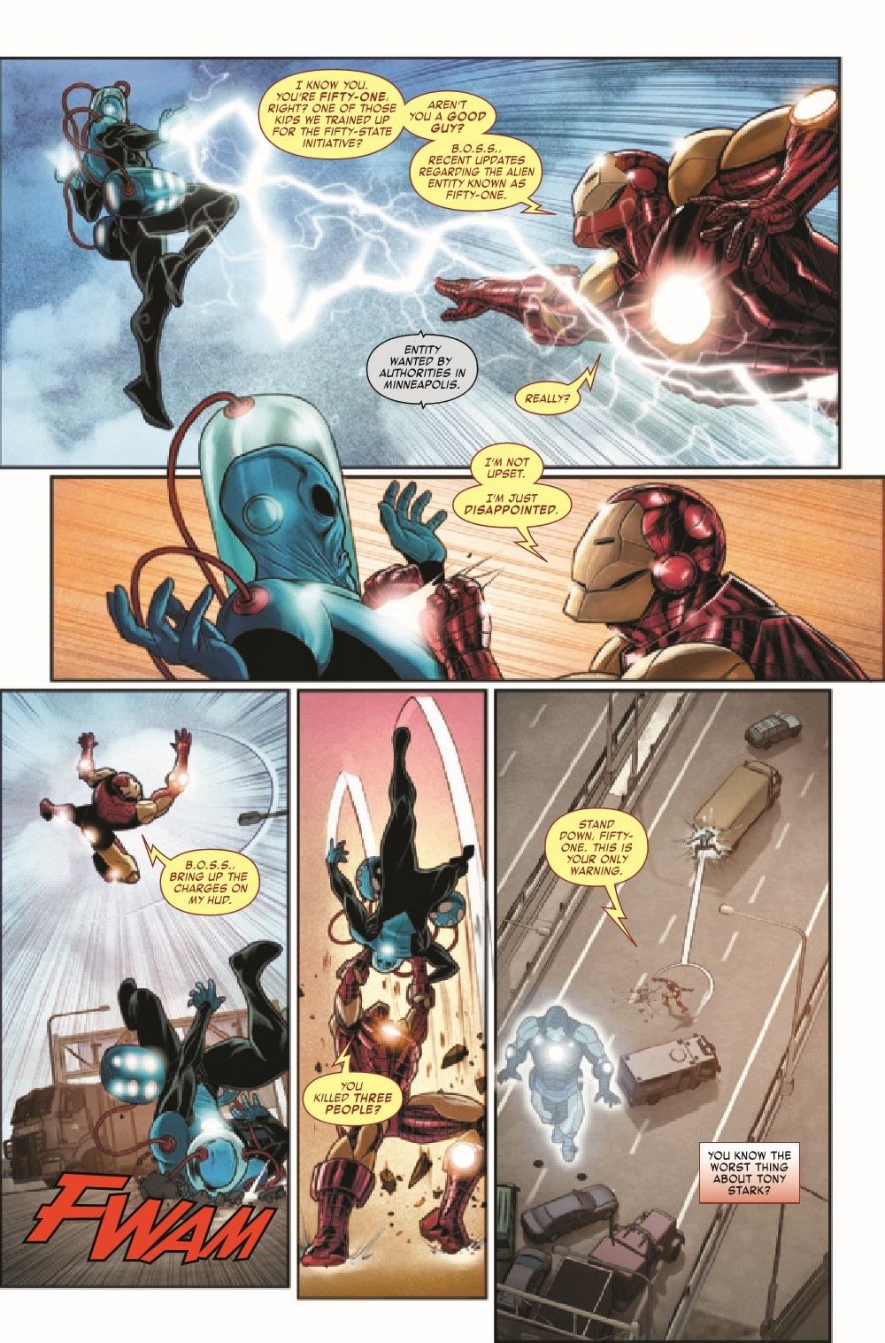 A government agent turned Hydra provocateur stages a daring breakout on her way to prison, attracting the attention of both Iron Man and Captain America. When Steve and Tony realize they both have a connection to the slippery fugitive, they team up to track her down—only to discover she's not the only player on the board with big plans and sinister motives… Derek Landy (FALCON & WINTER SOLDIER; THE BLACK ORDER) and Angel Unzueta (IRON MAN; STAR WARS) team up to bring you a thrilling adventure starring a fan-favorite dynamic duo!