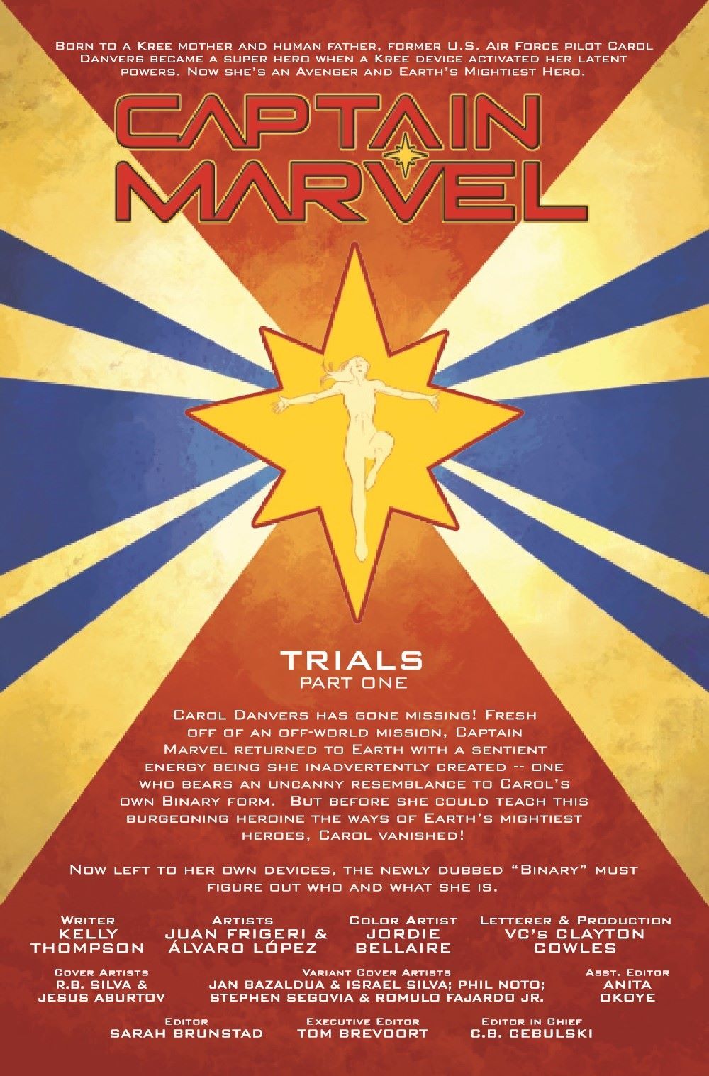 CAPTAIN MARVEL NO MORE! Carol Danvers is missing! Her disappearance has left the newly sentient BINARY to fill in, but stepping into the shoes of one of Earth's greatest heroes is no easy feat. As Binary finds herself plunged into a world she barely understands, the questions about exactly who and what Binary is grow deeper. And where IS Captain Marvel anyway?! A brand-new arc starts here as Kelly Thompson's award-winning epic adventure continues!