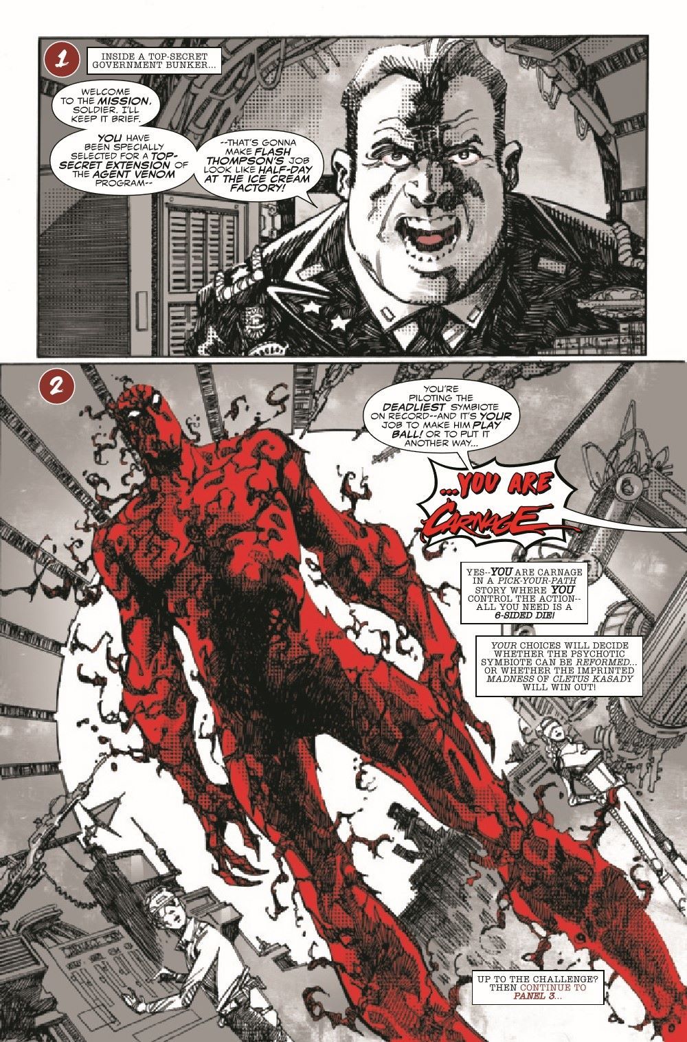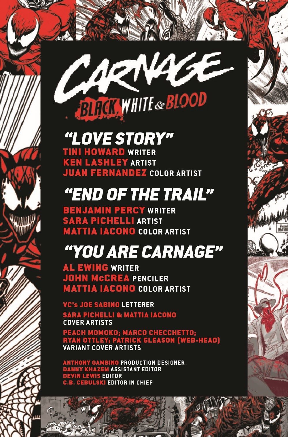 CARNAGE RULES! Witness the cerebral chaos caused by CARNAGE, brought to life by some of the greatest creators at Marvel! But beware, True Believers, true to their titular character's namesake, these spine-chilling tales are not for the faint of heart and presented in BLACK, WHITE AND BLOOD!