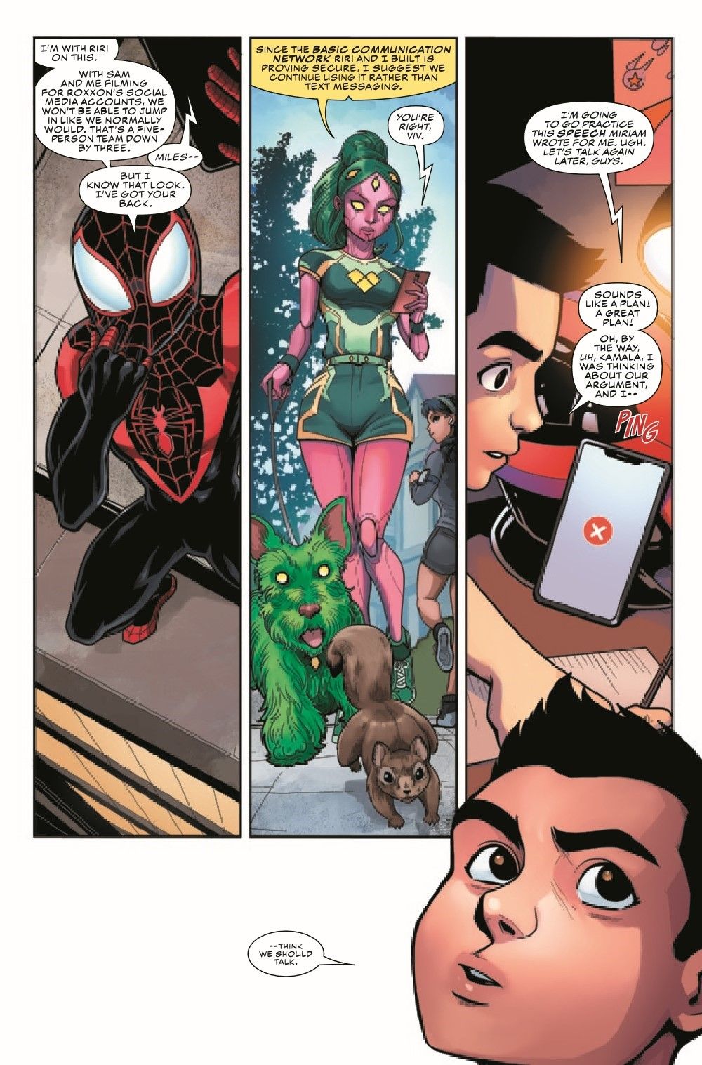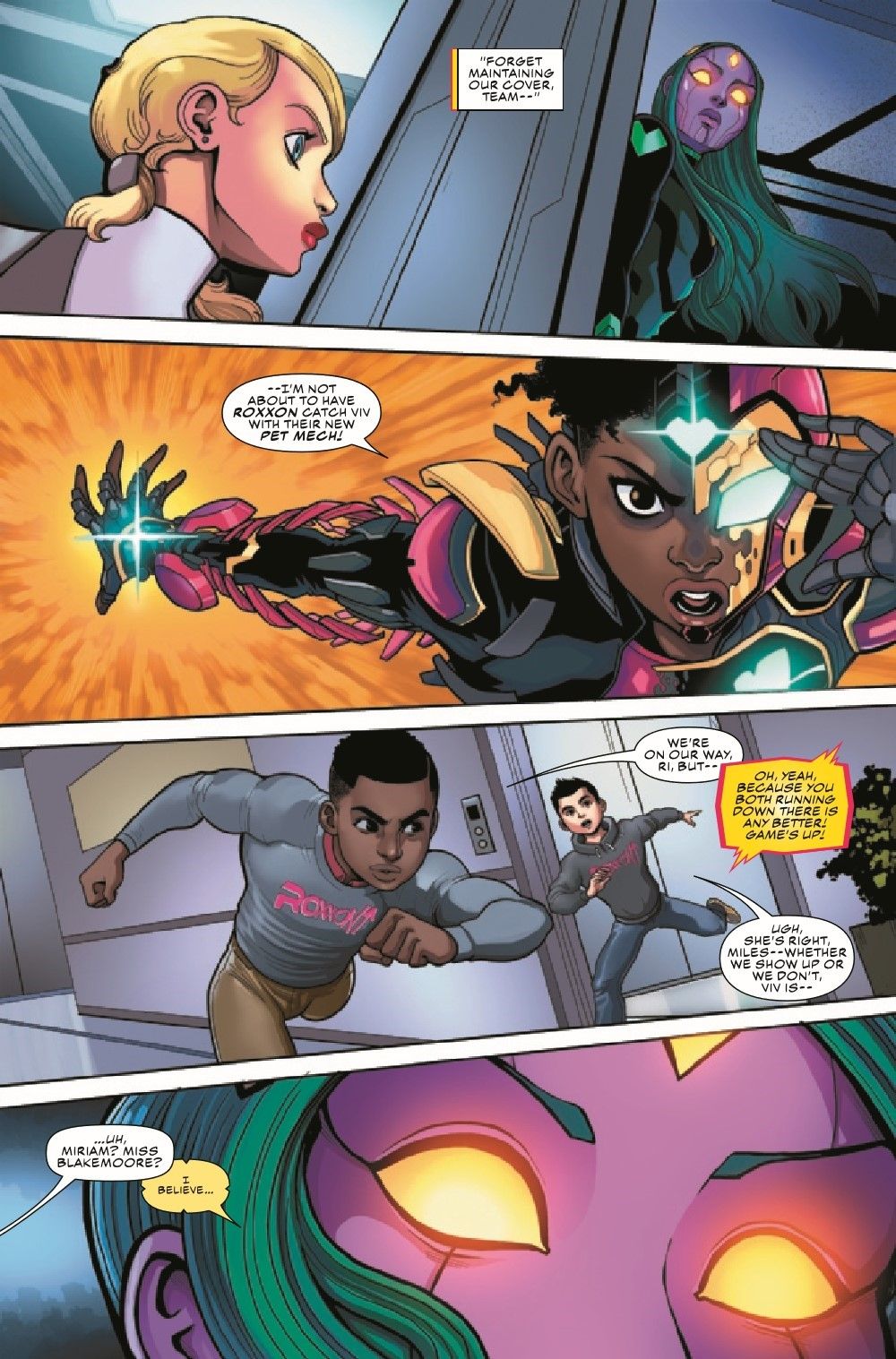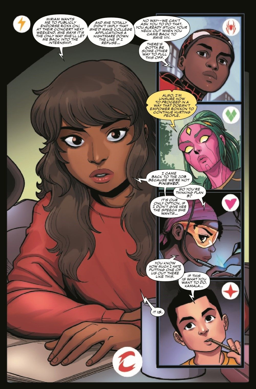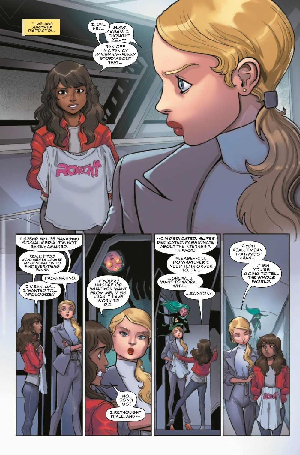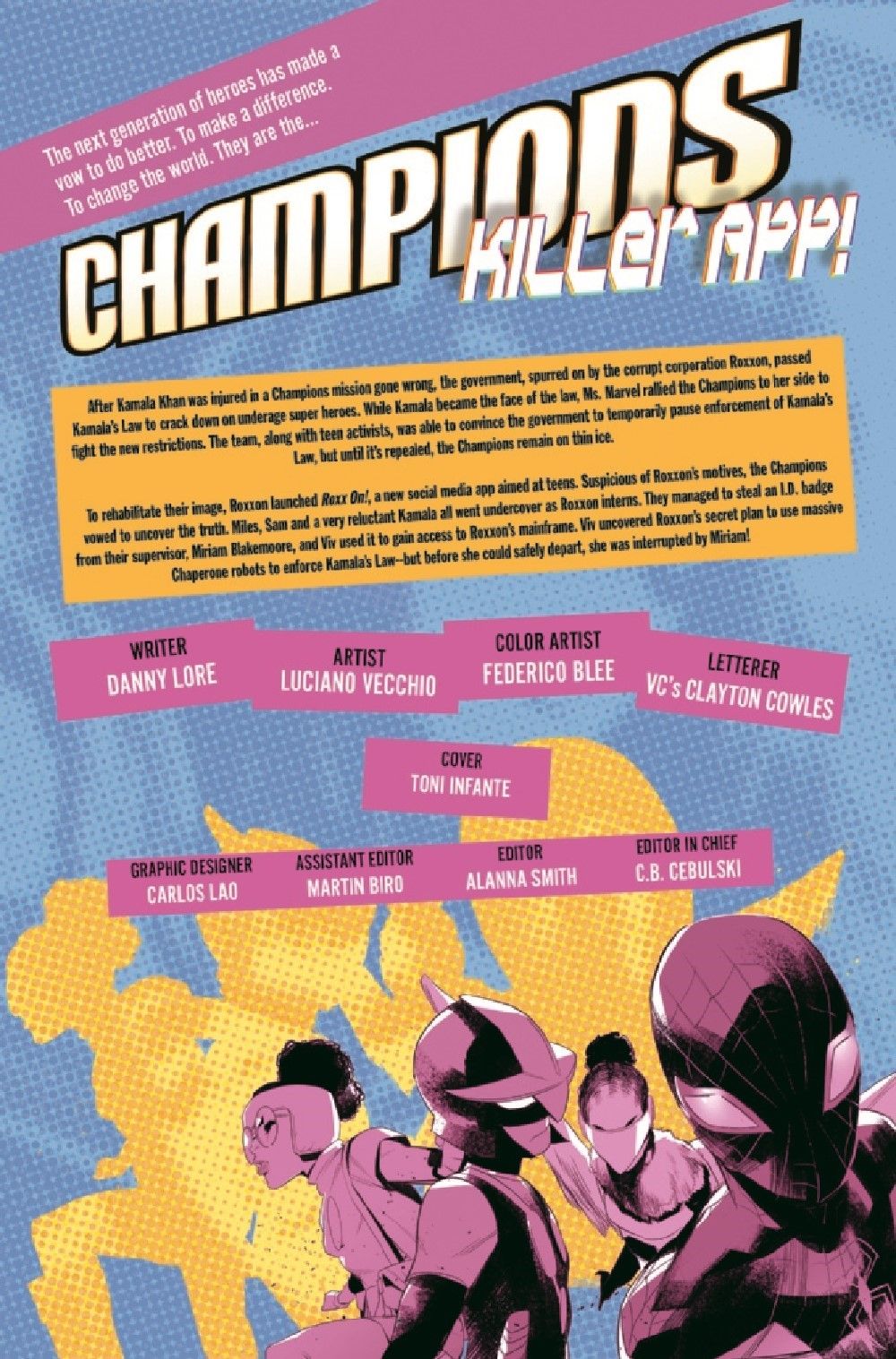 The Champions' commitment to destroying Roxxon from within faces its ultimate test, as Kamala is asked to speak for the company in front of a global audience. How far will Ms. Marvel go to destroy the corporation that almost ruined her life? And what will it cost the rest of the Champions?