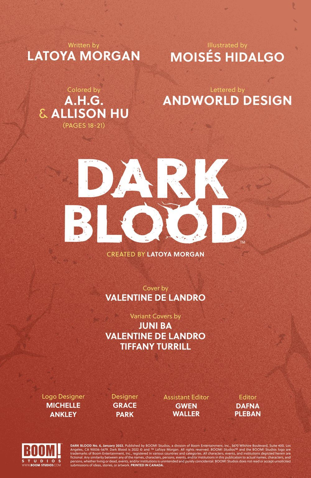 (W) LaToya Morgan (A) Moises Hidalgo (CA) Valentine De Landro