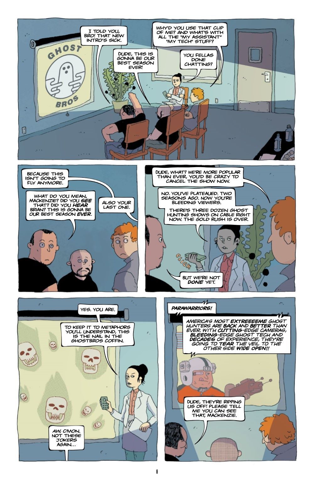 Trev, Kent, and Brian are allegedly friends, but are best known as the backbiting hosts of the popular ghost hunting show, Ghost Bros. With ratings falling and competition rising, they gamble it all on the Chernobyl of haunted locations: Edgeway Penitentiary, where the Ghostbros find conclusive proof of the afterlife... After they die and come back as ghosts themselves, trapped there with the angry ghosts who killed them!