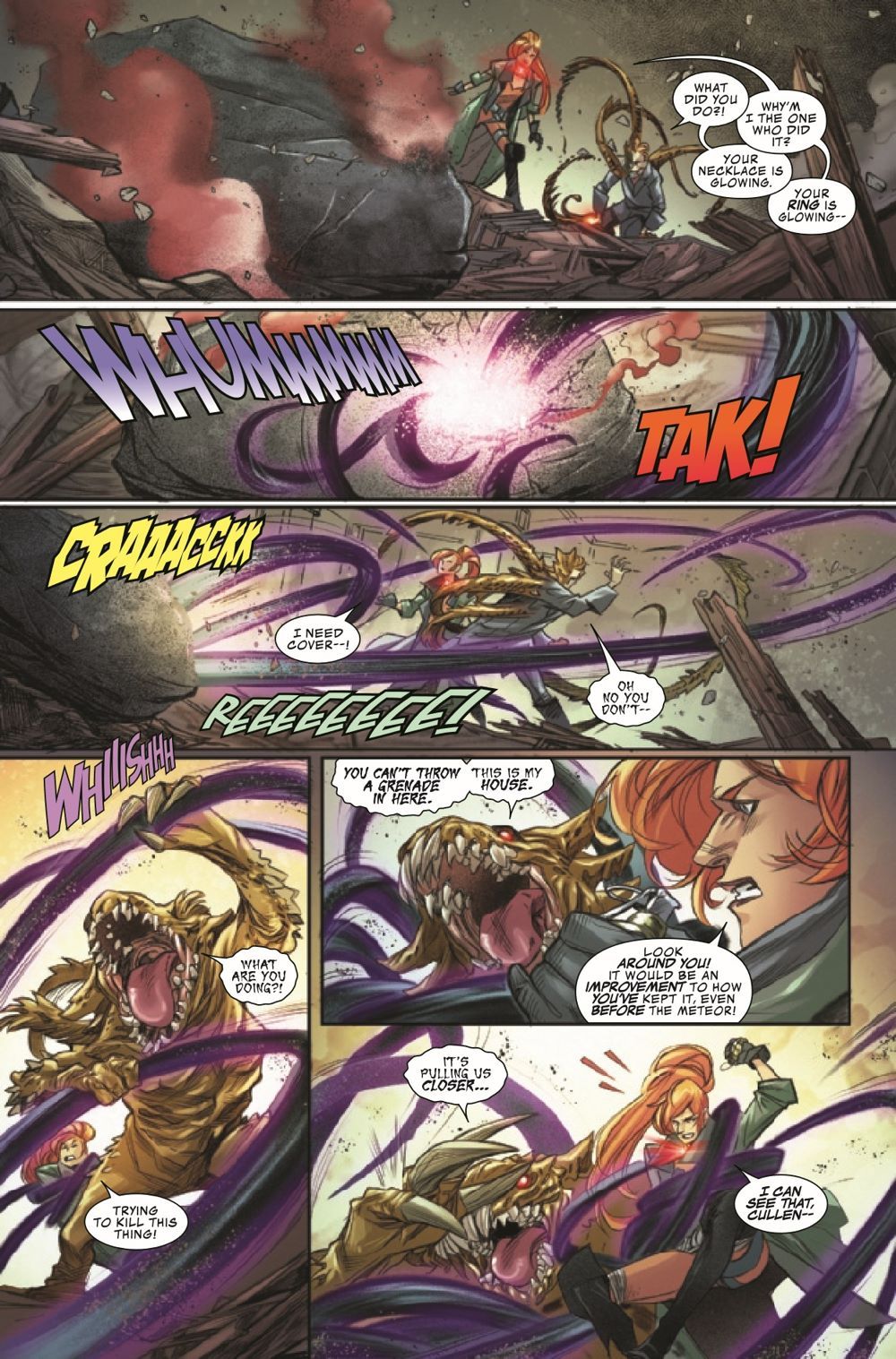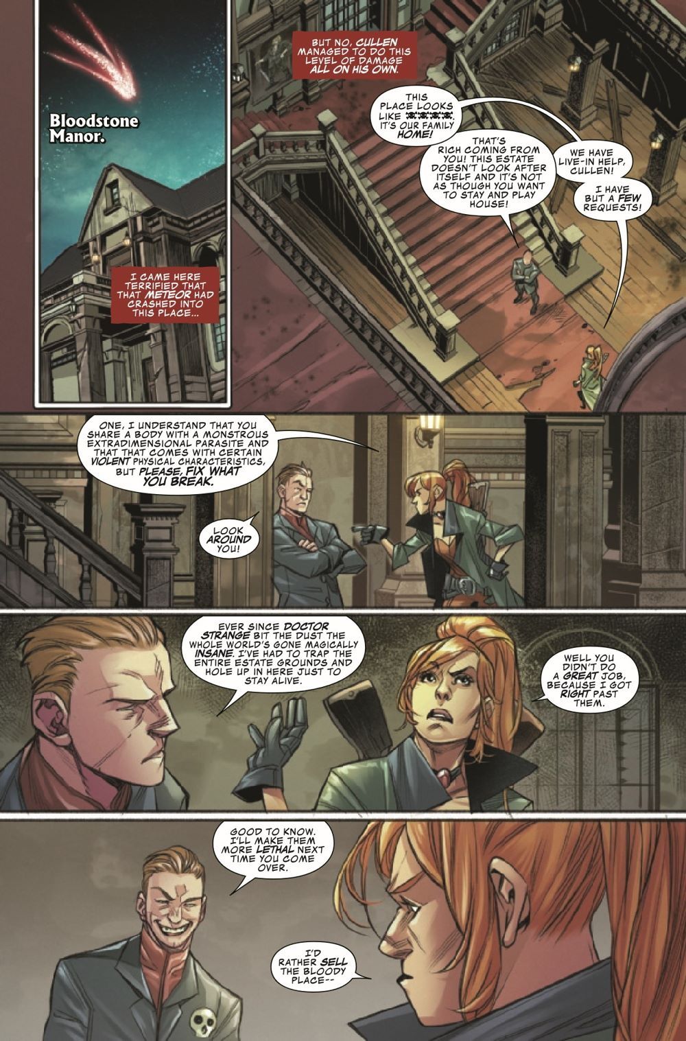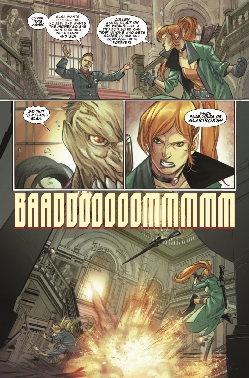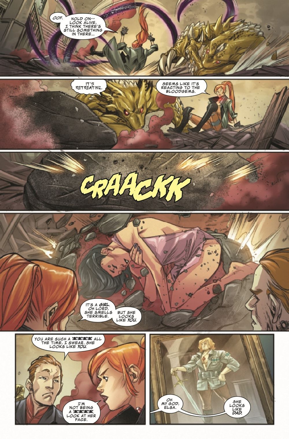 ELSA AND THE FAMILY BLOODSTONE! Who better to defend Earth from magical invaders than monster hunter ELSA BLOODSTONE?! Elsa is the best there is at what she does - tough, skilled and clever enough to handle any problem…except her brother, CULLEN. They have issues, and they'll have to put them aside not only to protect Earth but also to welcome the latest addition to the Bloodstone clan: their long-lost SISTER! Her awesome set of powers and unique Blood gem have placed a target on her back, and the worst horrors from beyond this realm are on the hunt.