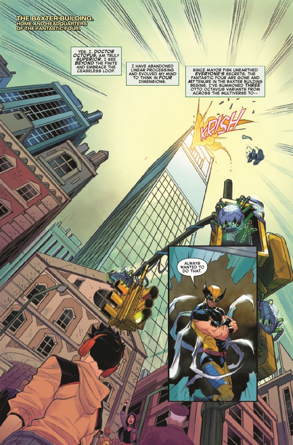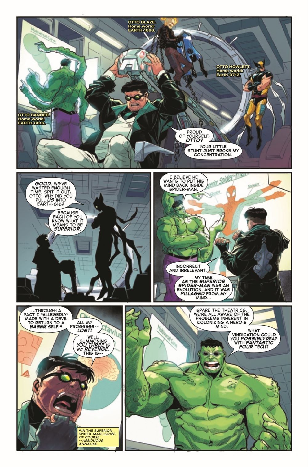THE FANTASTIC ARE NO MORE. LONG LIVE...THE SUPERIOR FOUR. Otto Octavius has acquired a taste for the infinite. Empowered by Wilson Fisk, Doctor Octopus faces a tantalizing, unprecedented opportunity to scour the Multiverse, amassing an army of…himself. An army to march on our reality, proving Otto's supremacy - and it all begins with his SUPERIOR FOUR