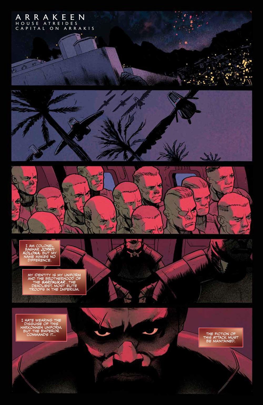 SPECIAL ISSUE. When the choice is vengeance or honor, which lies at the heart of a Sardaukar? Jopati Kolona one of the Sardaukar: the emperor's elite military unit. The Sardaukar are unbeatable, unbending in their devotion to the emperor, and feared throughout the galaxy. When Jopati meets Duke Leto of House Atreides, the house he believes responsible for the destruction of his home planet and family, he will be forced to question a life-long hatred. Tasked with overthrowing the Atreides stronghold on Dune for his master, Jopati will be forced to choose between duty and forgiveness. A poignant, blood-soaked tale expanding the rich mythology of Frank Herbert's Dune by New York Times bestselling authors Brian Herbert and Kevin J. Anderson with artist Adam Gorham (The New Mutants: Dead Souls, Punk Mambo).