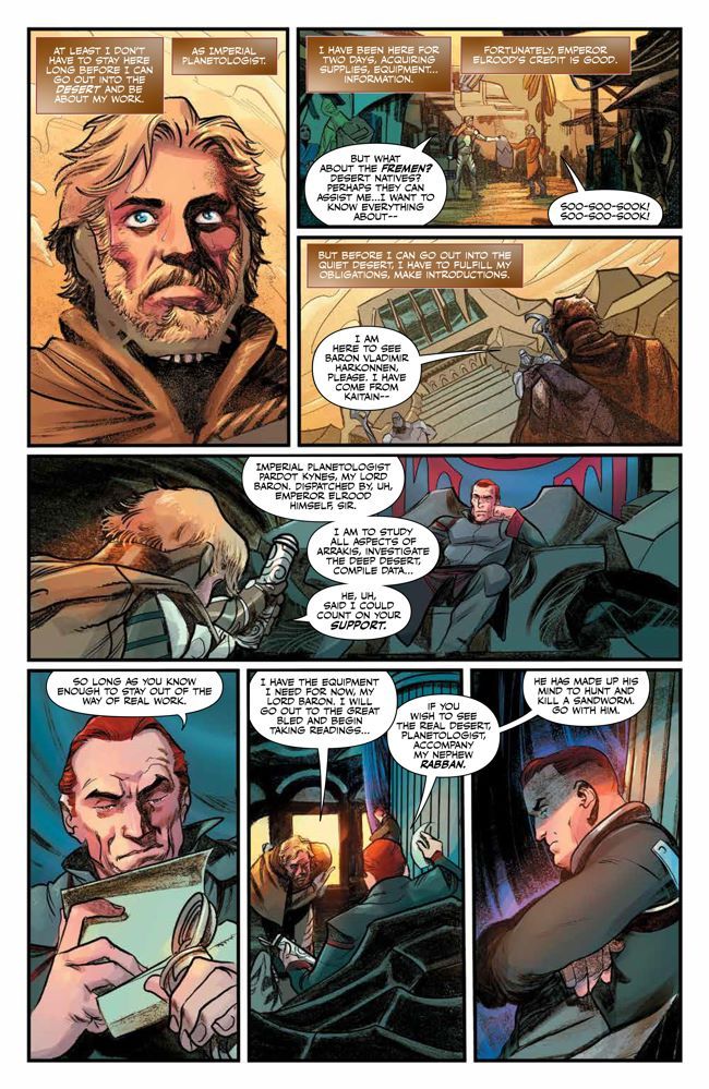 The acclaimed prequel to the groundbreaking Dune continues in comic book form for the first time. Pardot Kynes arrives on Arrakis to begin research into terraforming the desert planet, but the merciless Baron Harkonnen has plans of his own. Meanwhile, the sadistic Harkonnens brutally test a young slave named Duncan Idaho. And Leto Atreidies meets with the pioneers of space travel technology - taking the first steps towards his incredible destiny.
