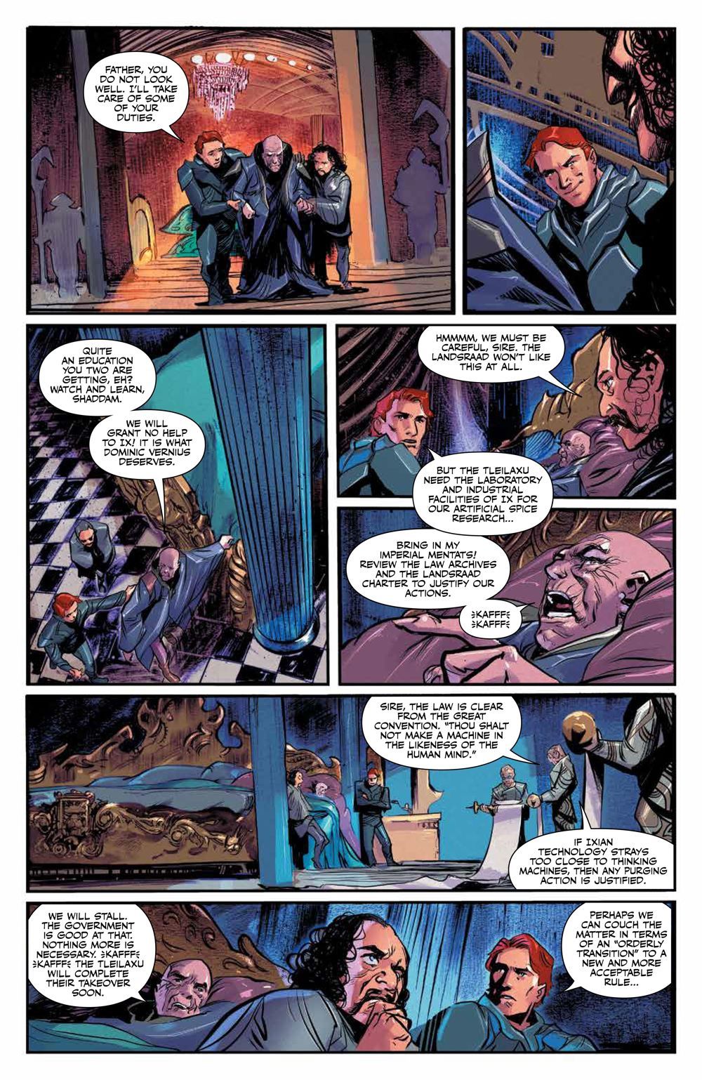 An unexpected revolt throws the balance of Ix into jeopardy and now Leto must make an important decision as the underground city is on the cusp of falling into evil hands. And while The Bene Gesserit's oracles predicted they would need a child from the Baron Harkonnen in order to continue tracing a genetic line to their foretold messiah... their plan has not gone as well as hoped. On the doorstep of Castle Caladan comes the man who will change everything - Duncan Idaho has arrived.