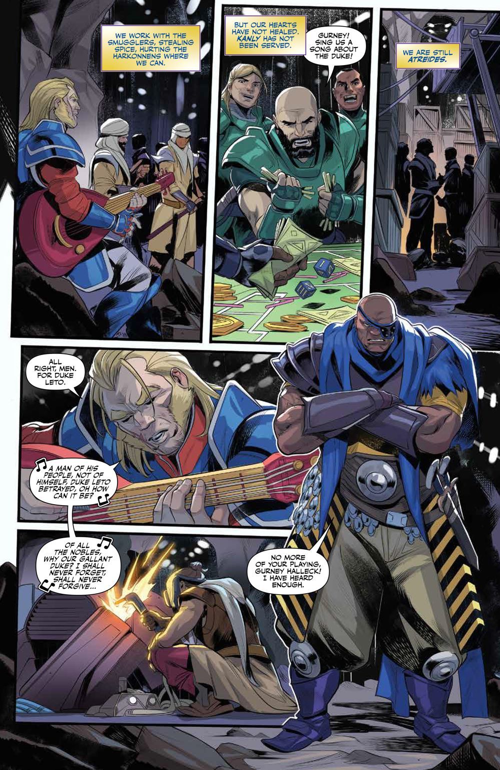 NEW SERIES. Go deeper into the Dune universe with this lore-expanding story set during the events of the Frank Herbert classic! In the aftermath of the battle of Arrakeen, legendary House Atreides warmaster Gurney Halleck takes refuge with spice smugglers, vowing revenge against the Harkonnens no matter the cost. Artist Francesco Mortarino (Power Rangers) brings the story by original authors Brian Herbert & Kevin J. Anderson to life in ways that will excite both fans of the novels and the recent hit film alike!