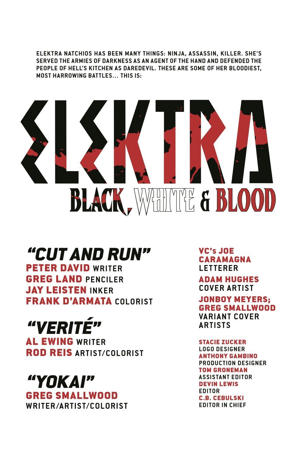 AN AWESOME ASSEMBLY OF ASSASSIN ACTION AS ONLY THE HOUSE OF IDEAS CAN PROVIDE! Elektra Natchios has a reputation for being as intelligent as she is deadly - and on the seedy streets of the island called Madripoor, a drifter named PATCH is about to discover why.