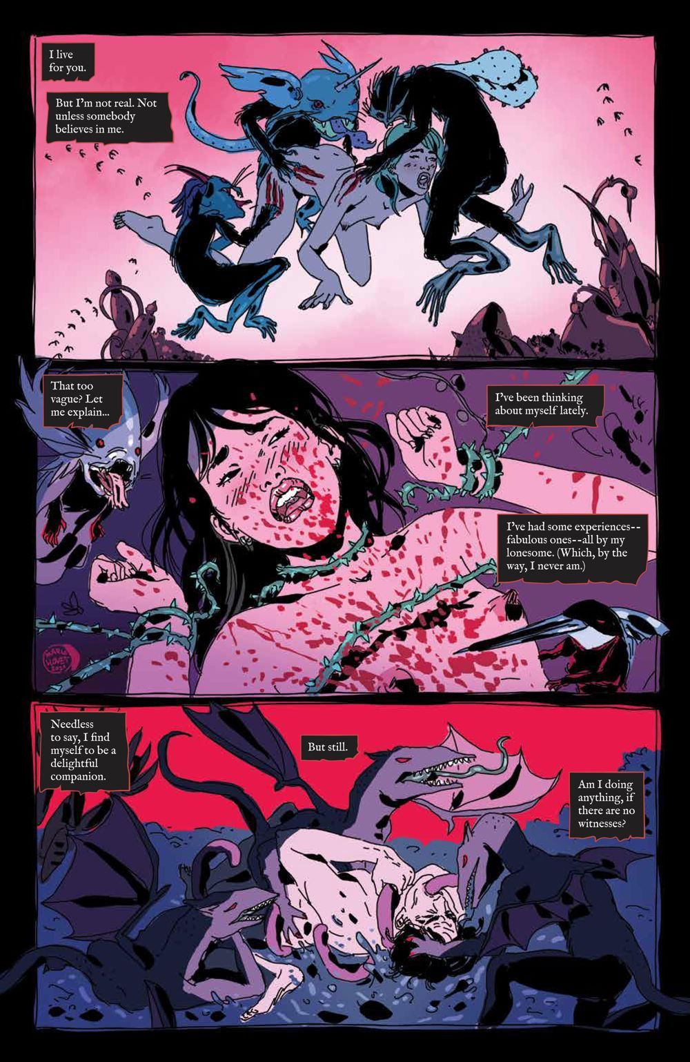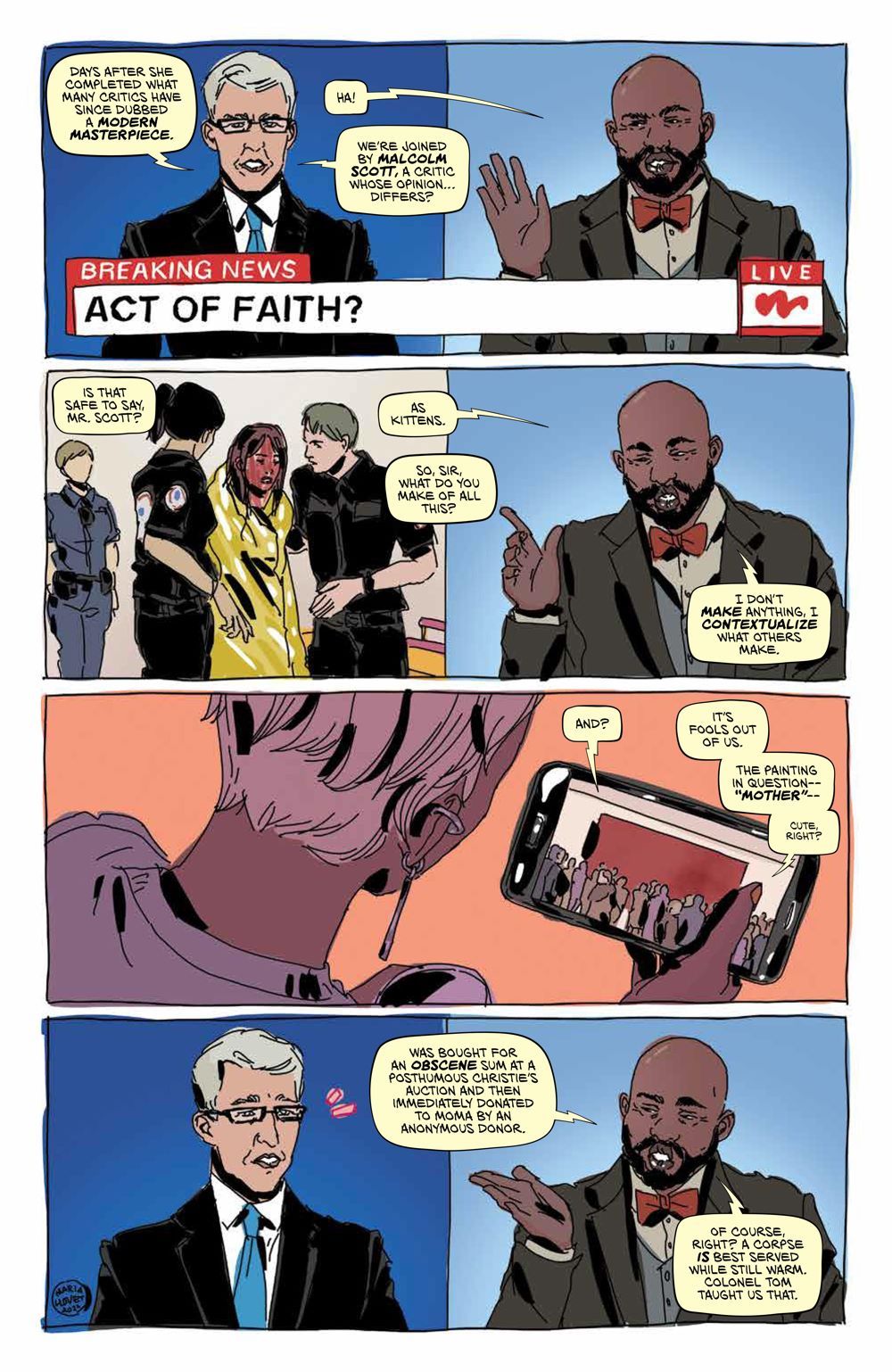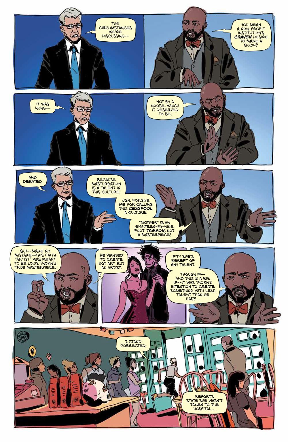 NEW SERIES. The final act of Azzarello and Llovet's erotic thriller masterpiece! Nine months after her mysterious disappearance, Faith suddenly drops back onto the map. While the art world debates whether her disappearance was a piece of performance art or all just a publicity stunt, Faith retreats to Louis's studio to recover from her journey into the unknown. But Ginny begins to realize that something is very much amiss with Faith. Where was she for nine months? And why does Faith suddenly seem so obsessed with Ginny's son Jacob? The acclaimed team of New York Times bestselling writer Brian Azzarello (Batman: Damned) and Maria Llovet (Luna) reunite for the third and final act of their erotic thriller masterpiece!