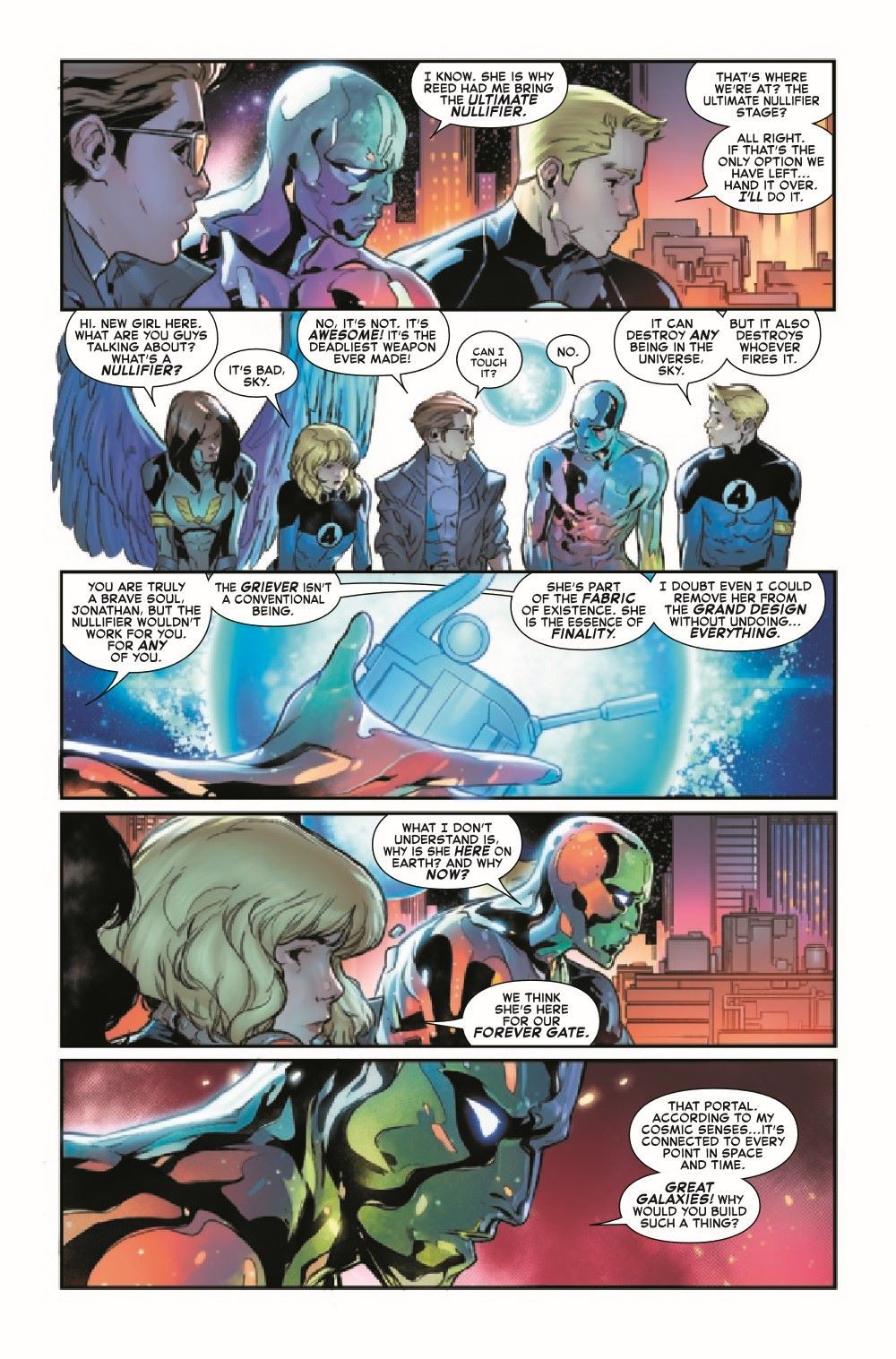 "Nullified" The deadliest weapon in the universe. The greatest force it could ever be leveled at. And a decision that could forever change the life of our Fantastic cast! Plus, a shocking return of a major character! This one is not to be missed! Guest-starring the SILVER SURFER... and more!