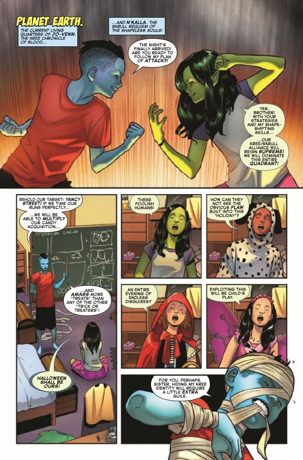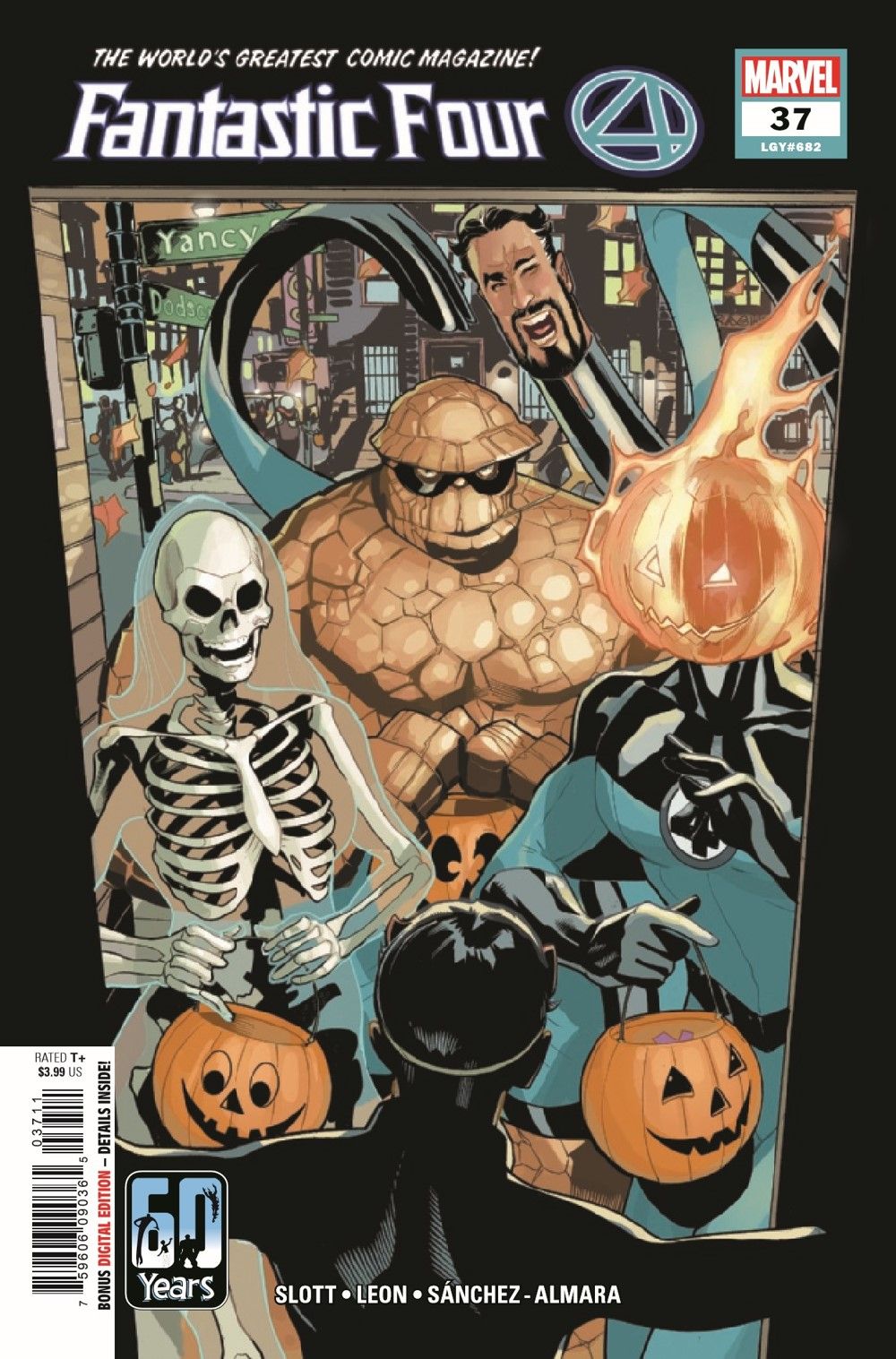 "There Are Monsters on Yancy Street" The fallout from the FF's 60th anniversary stories continues! Maybe a visit from a certain friendly neighborhood Spider-Man might help with that? Meanwhile, it's time for Ben and Alicia to take their kids trick or treating for the very first time... which might not be such a good idea. Especially when one of the Fantastic Four's greatest enemies has returned!