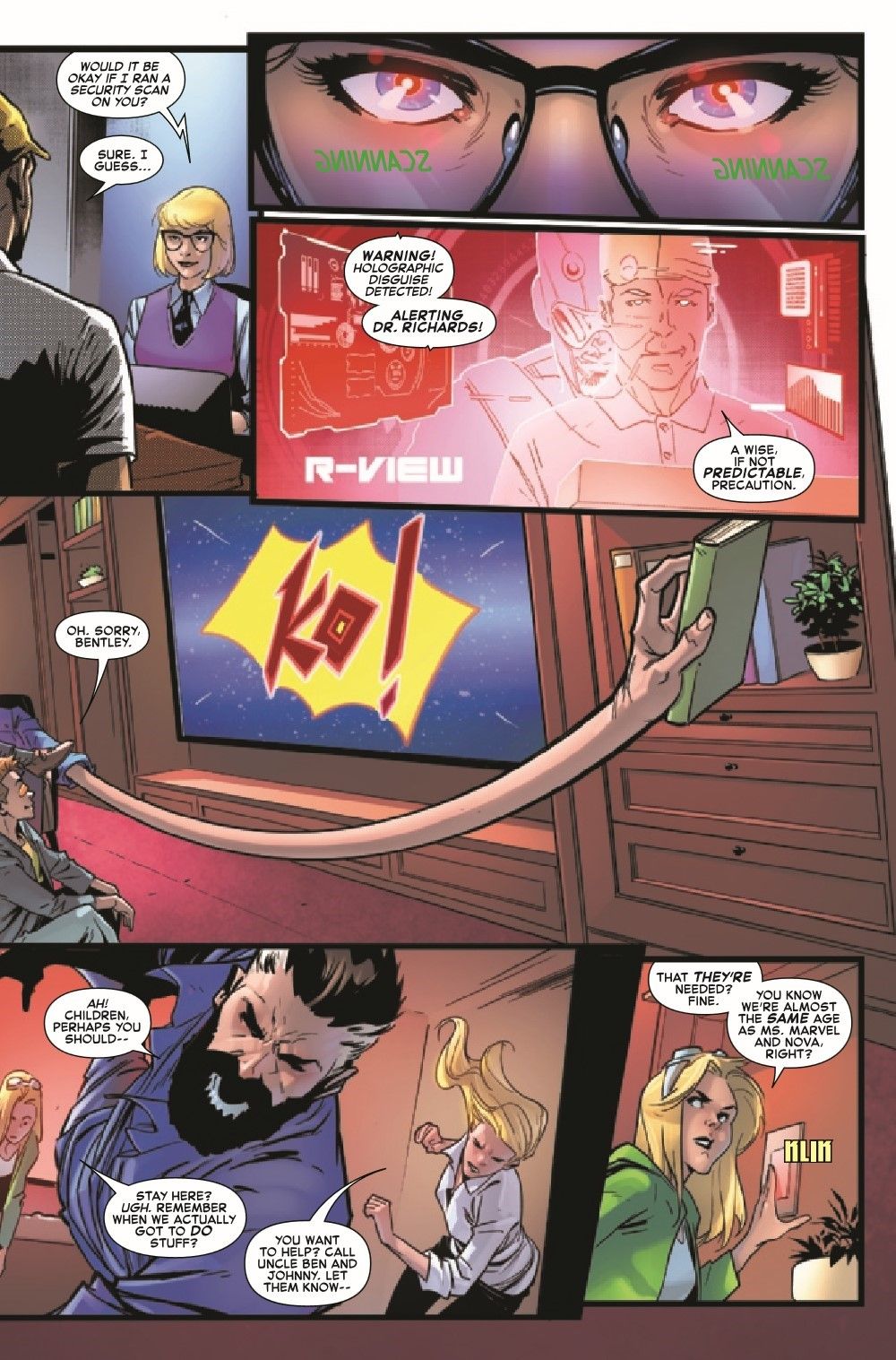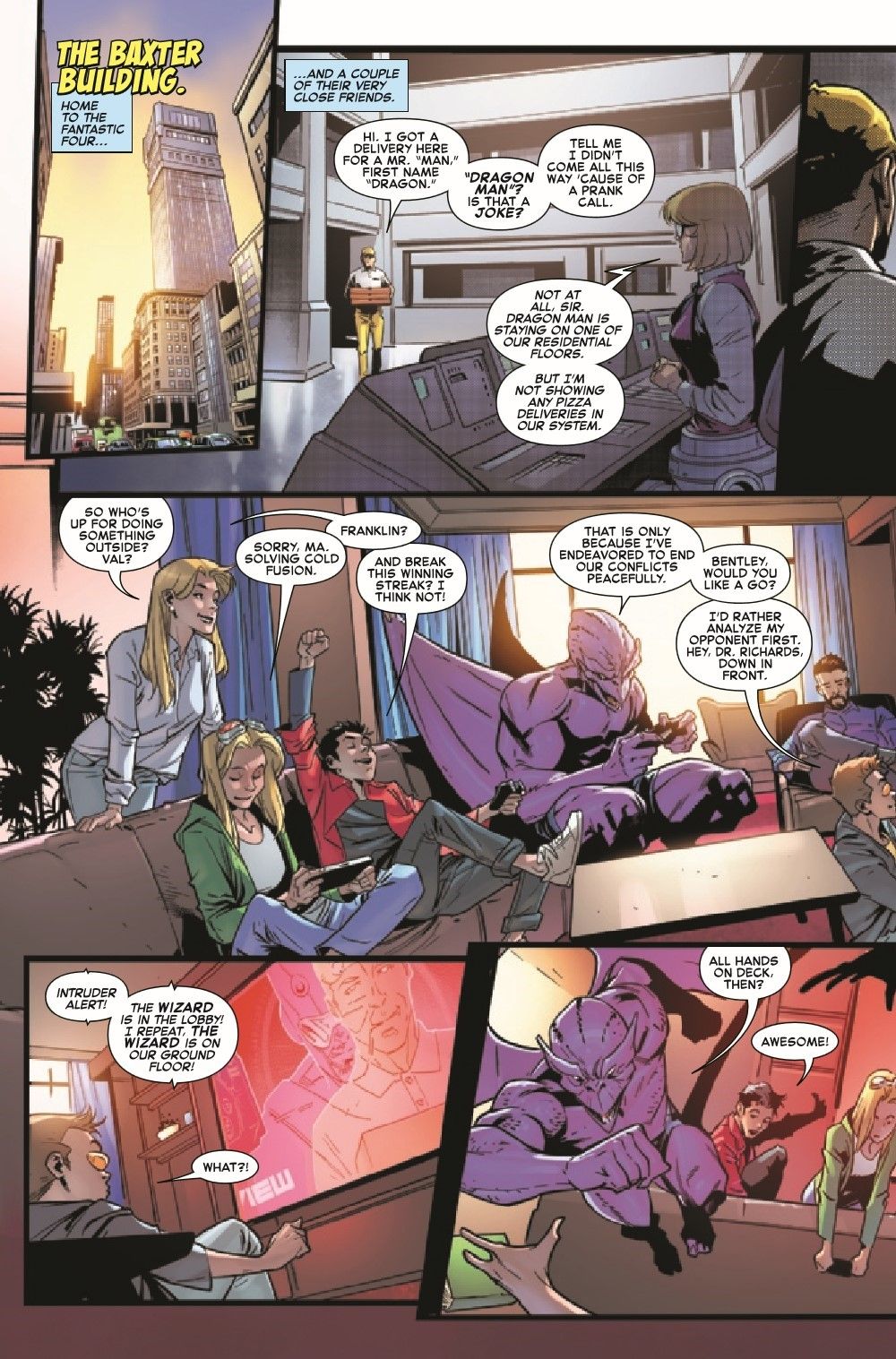 When the Wizard and the Frightful Four menace the FF both in AND out of the courtroom, it's time to call in everyone's favorite green lawyer: the Sensational She-Hulk! • All this and some surprise Marvel U. guest stars...and a new development for a member of the Richards family.