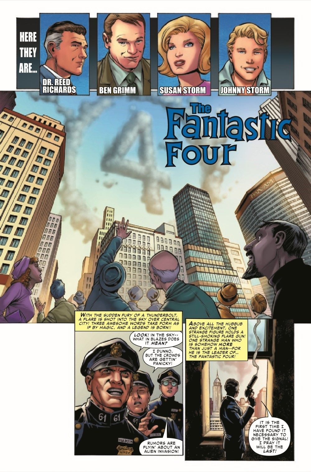 Sixty years ago, Stan Lee and Jack Kirby made history and brought about the beginning of the Marvel Age of comics with the release of FANTASTIC FOUR #1. Now a bevy of Marvel's finest creators pay tribute to that monumental moment by reinterpreting, page by page, the story from that inaugural release as well as FANTASTIC FOUR ANNUAL #3, in which the entirety of the Marvel Universe attended the wedding of Reed Richards and Sue Storm! Whether these are stories you've never read before or tales that you're intimately familiar with, this is the perfect way to experience them anew!