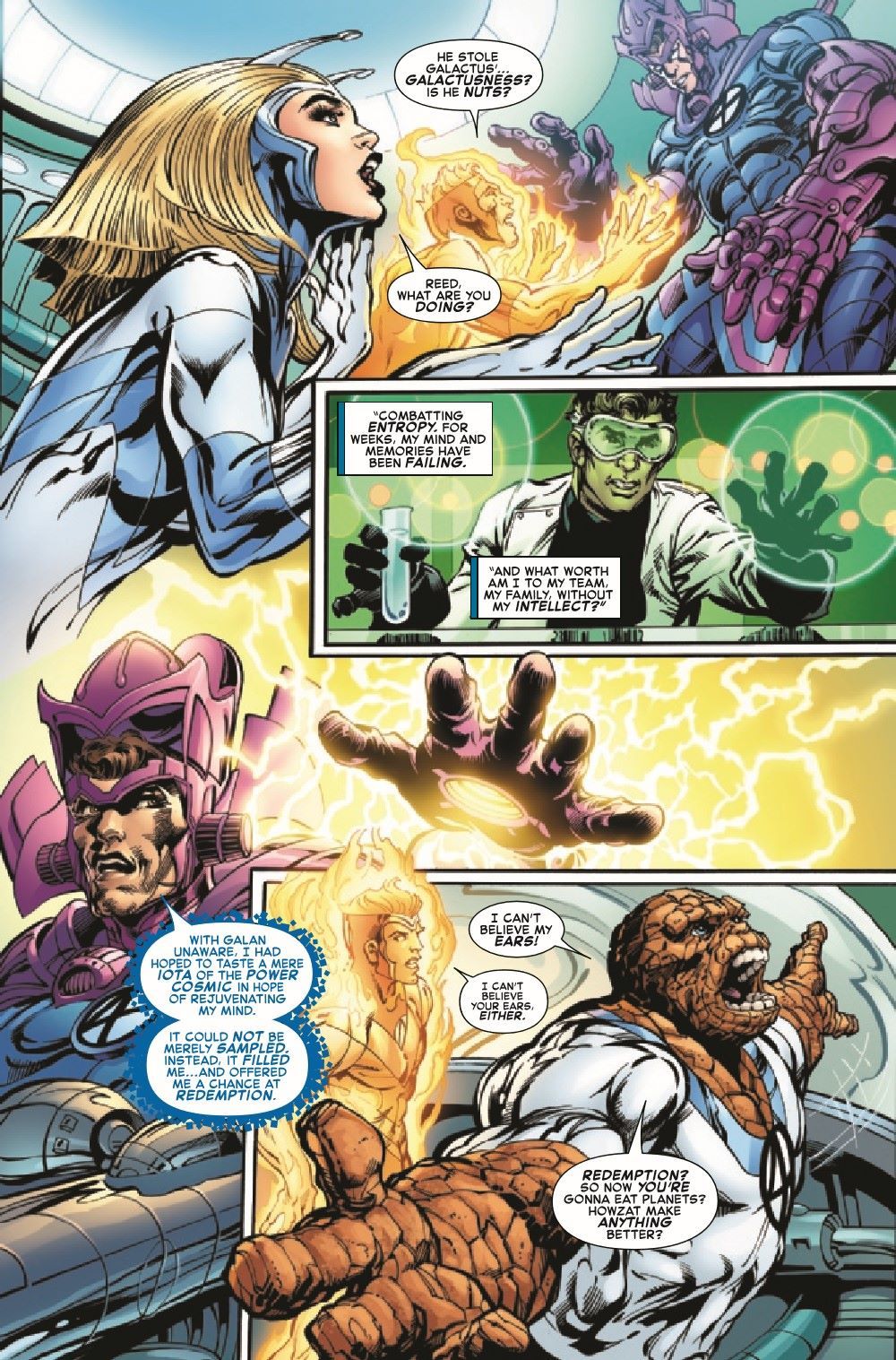 Reed Richards has made the ultimate sacrifice to save the cosmos from both Antithesis and Galactus, dooming himself to a life among the stars! Meet Mr. Galactic!